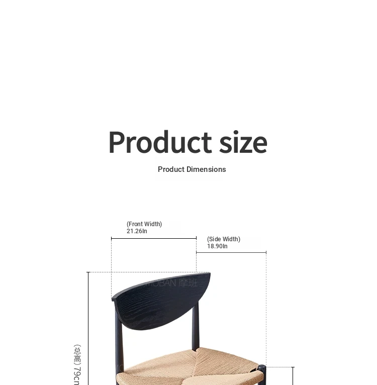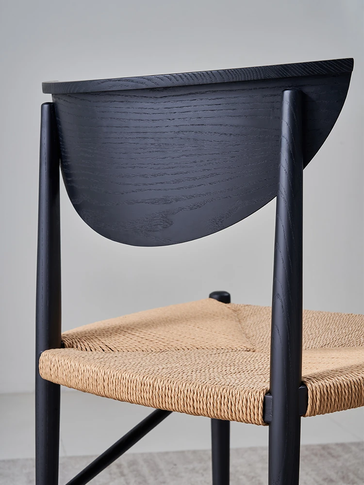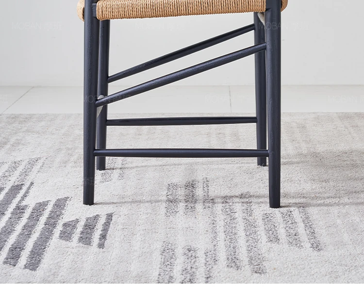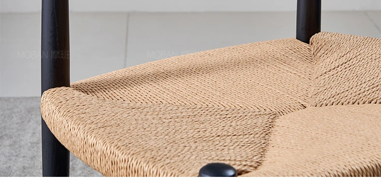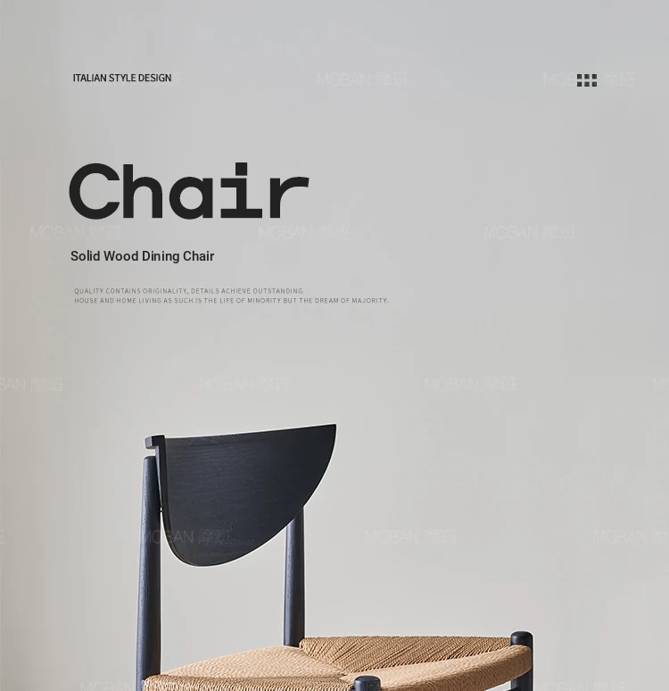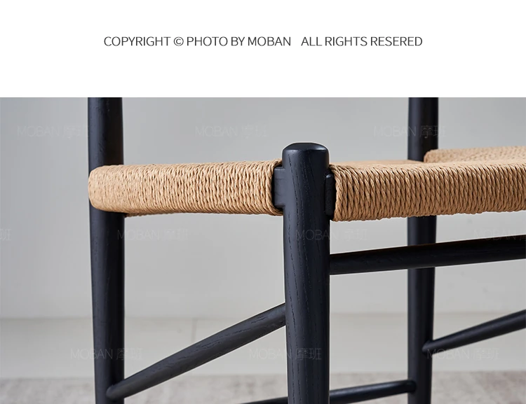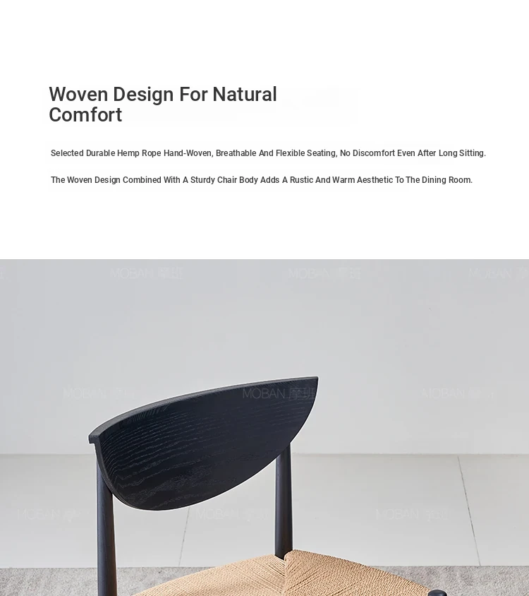 Moban Wabi-Sabi Style Dining Chair - Handwoven Rattan Rope Chair by Danish Designer, Nordic Vintage Solid Wood Backrest Chair for Elegant Dining Spaces