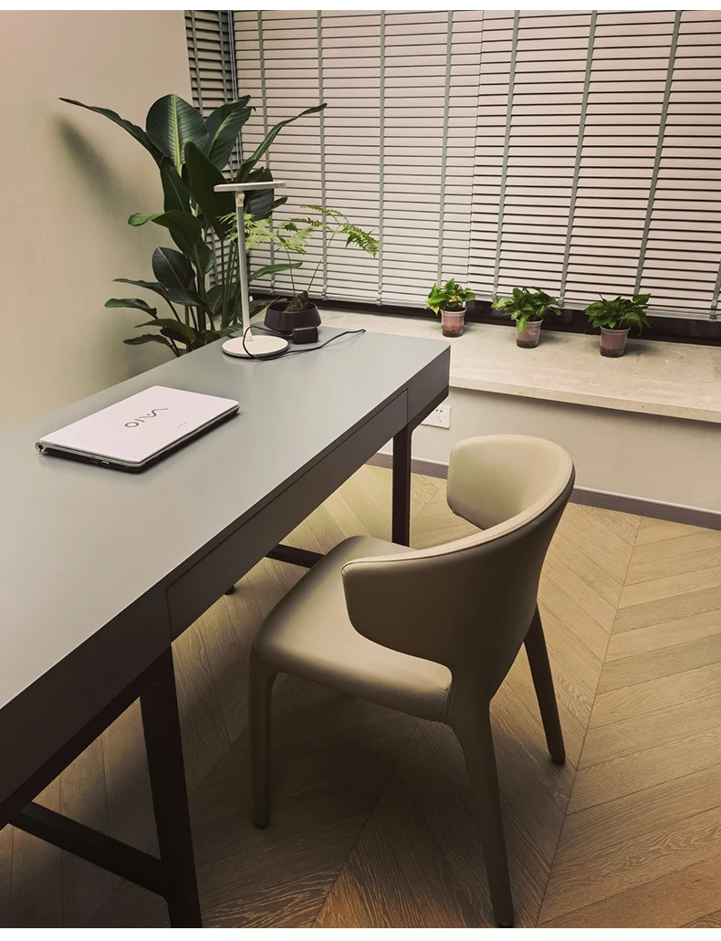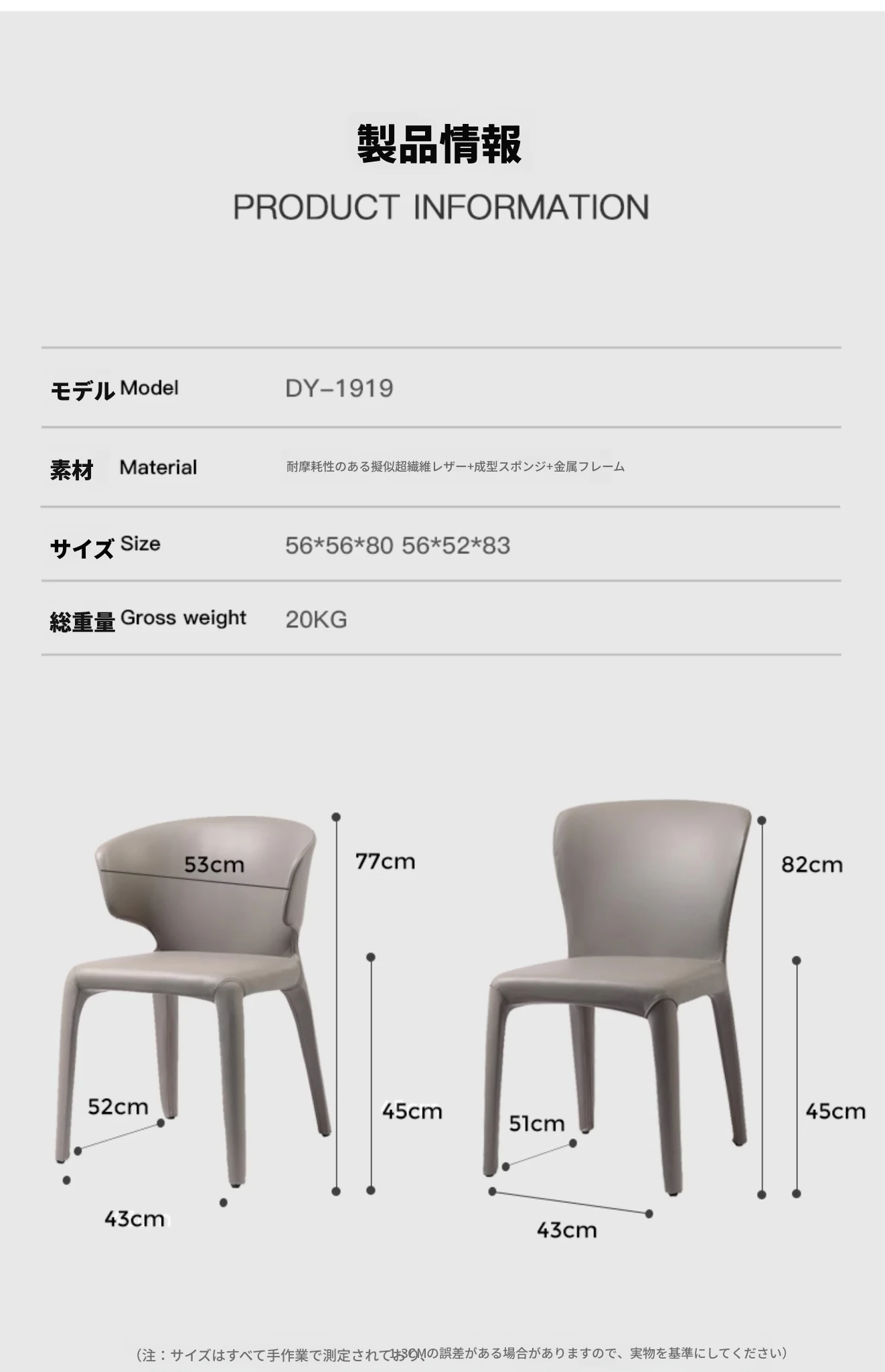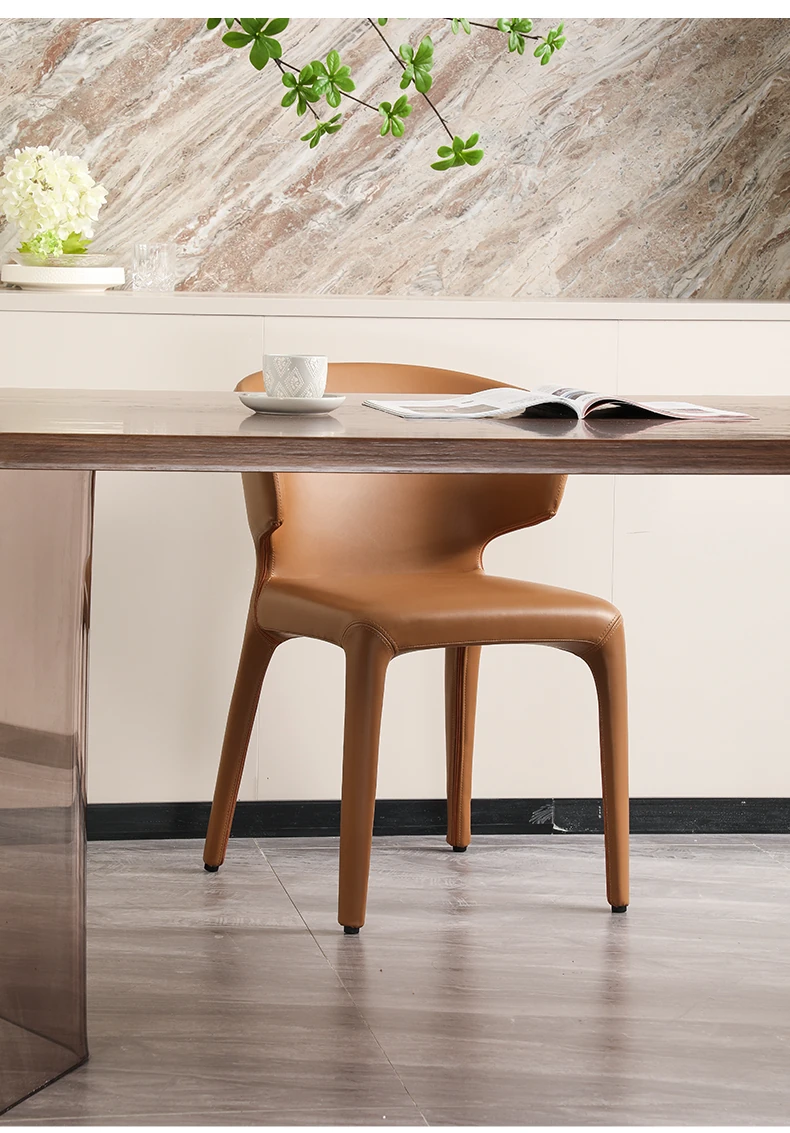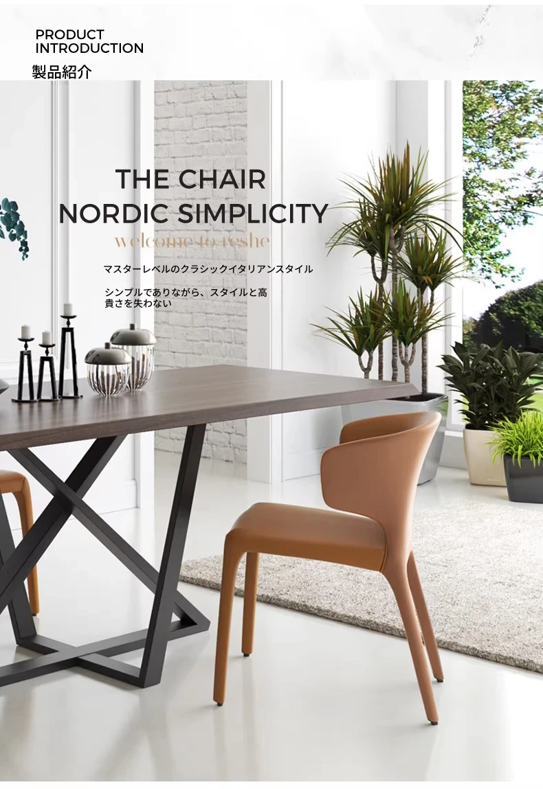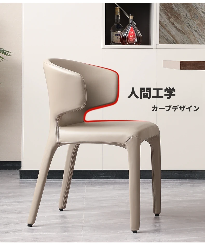 モダンでシンプルなイタリアンスタイルの高級感あふれるレザー製ダイニングチェア!家庭用の食卓にぴったりな軽やかなデザインで、優雅な食事のひとときを演出します。