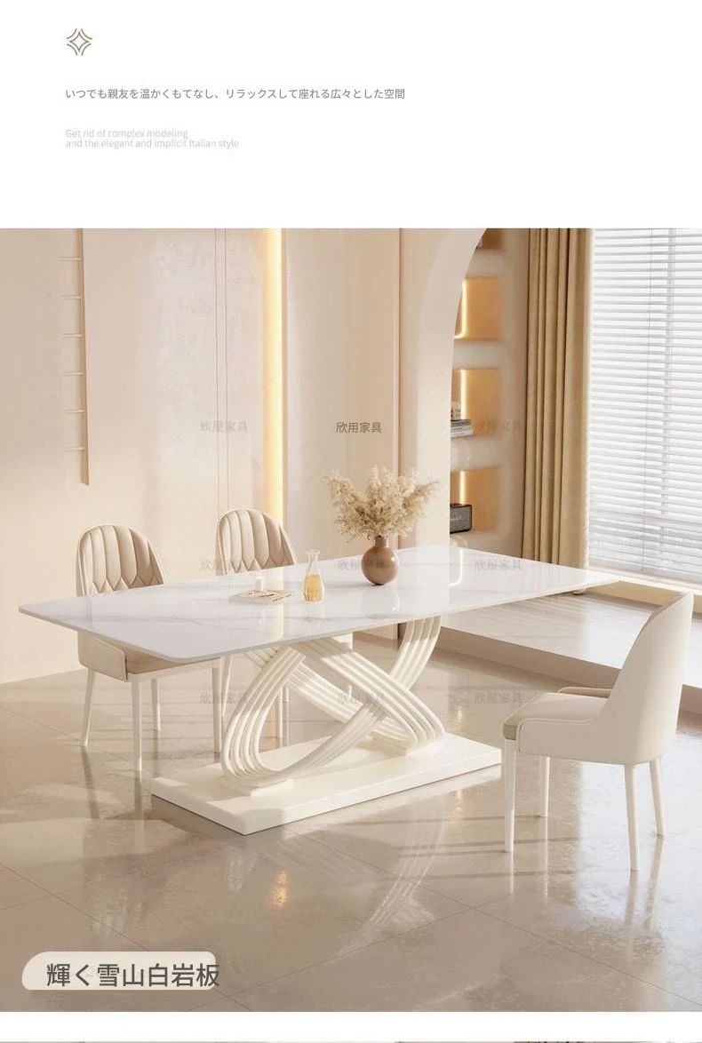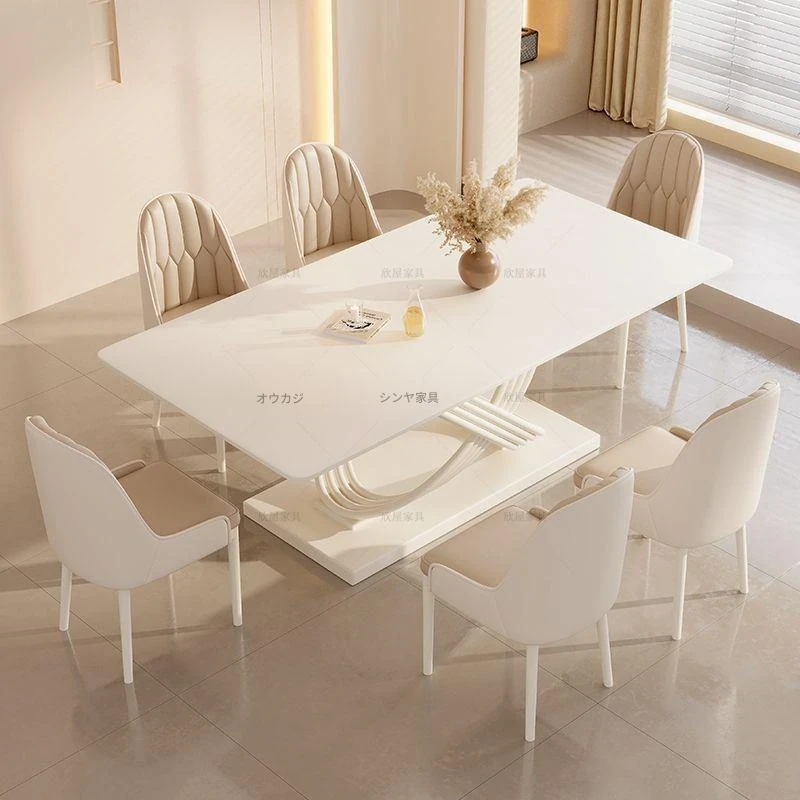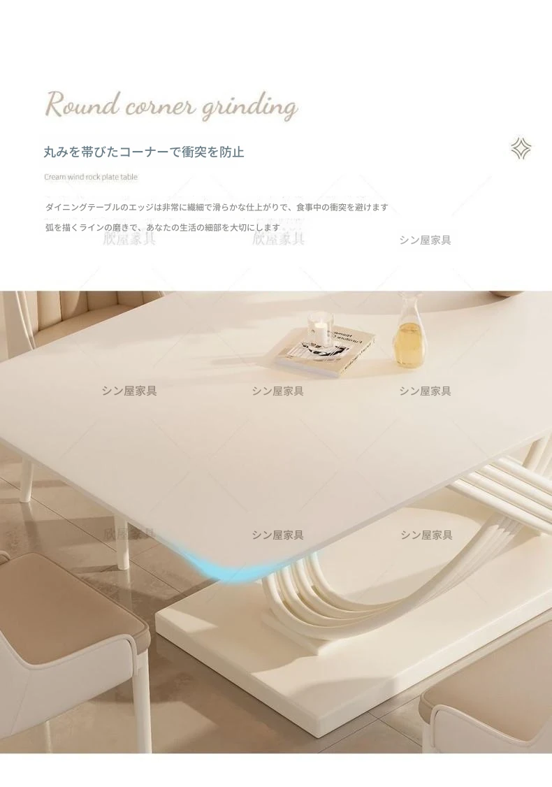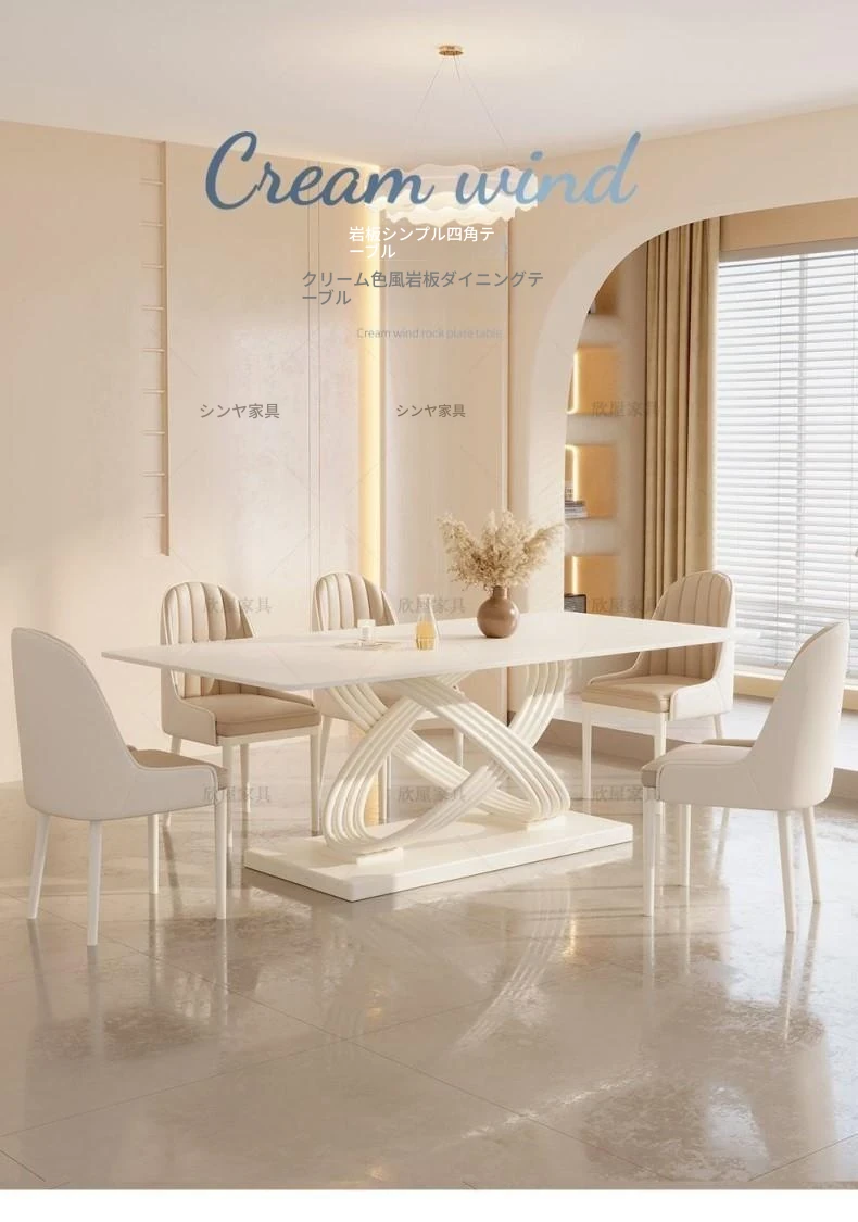 クリーム風ホワイト岩板ダイニングテーブル&チェアセット|現代的な小型住宅にぴったりのイタリアンミニマルデザイン|長方形で軽やかなラグジュアリー感を演出|新作で特別な食卓をお楽しみください!