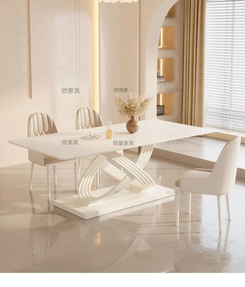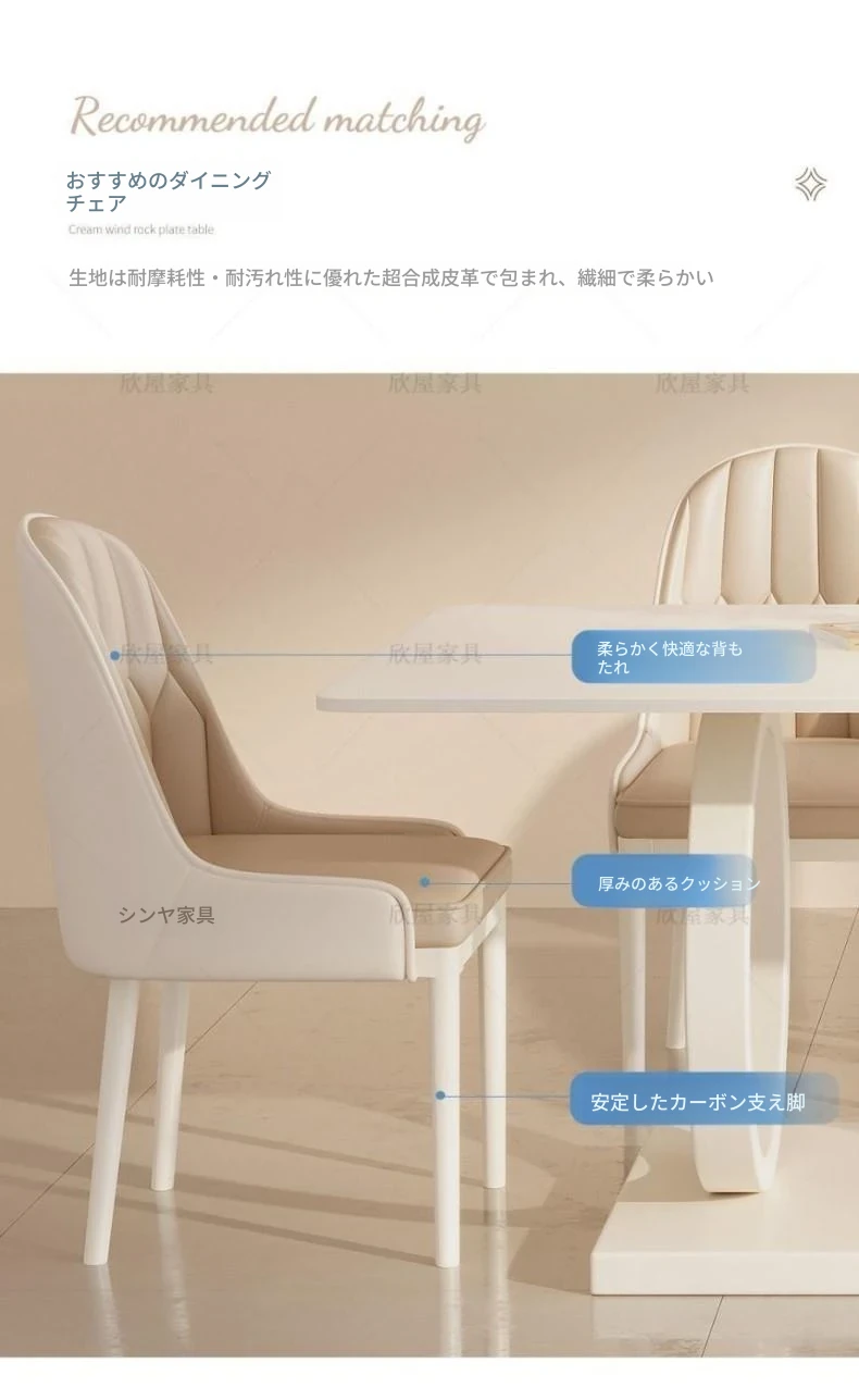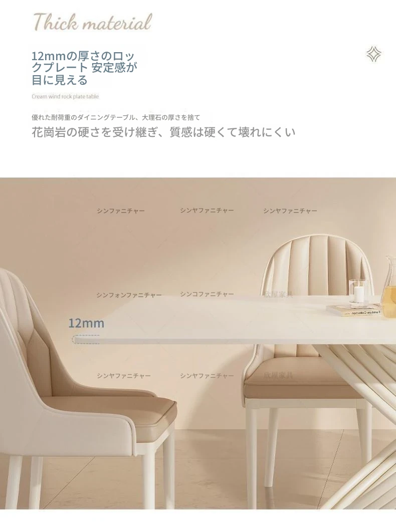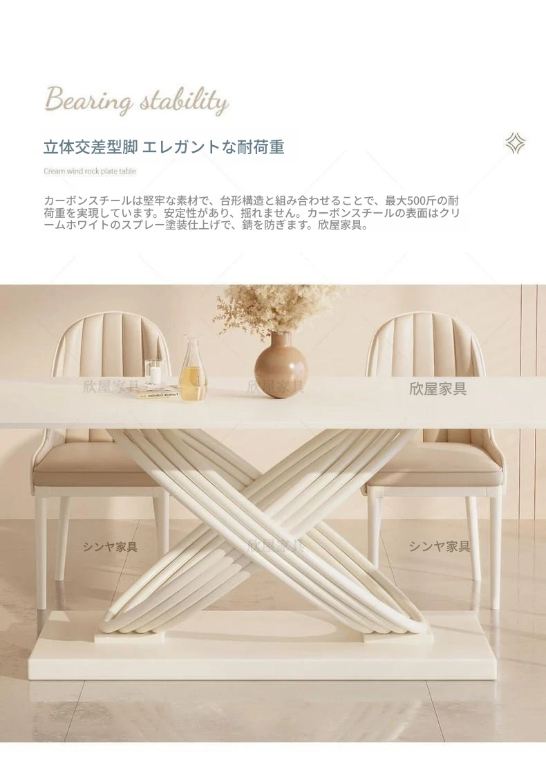 クリーム風ホワイト岩板ダイニングテーブル&チェアセット|現代的な小型住宅にぴったりのイタリアンミニマルデザイン|長方形で軽やかなラグジュアリー感を演出|新作で特別な食卓をお楽しみください!