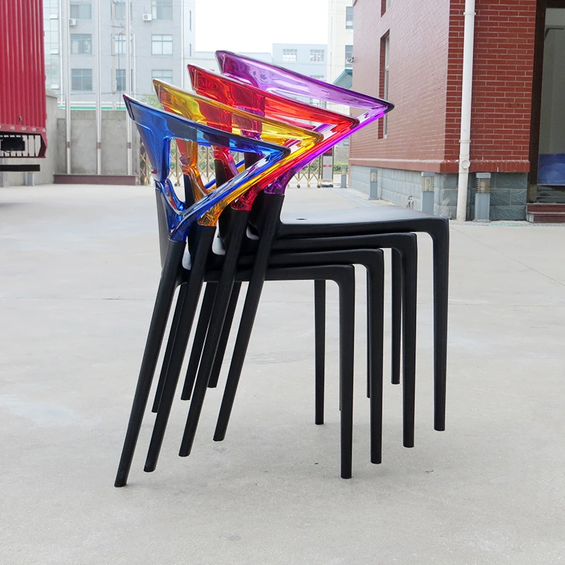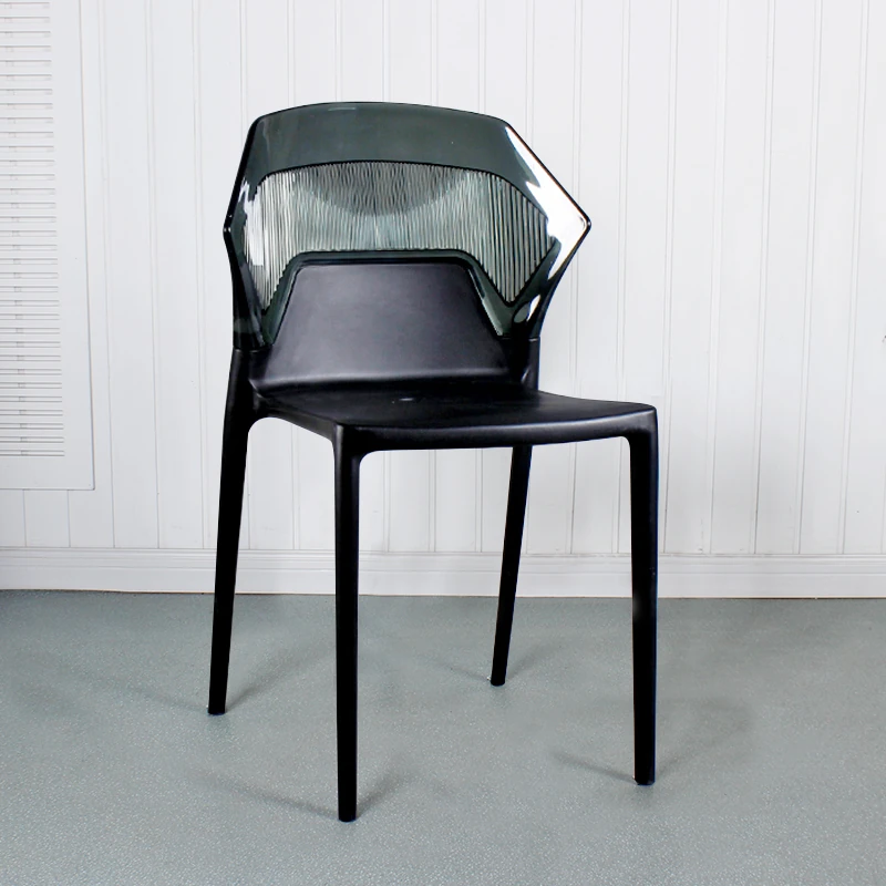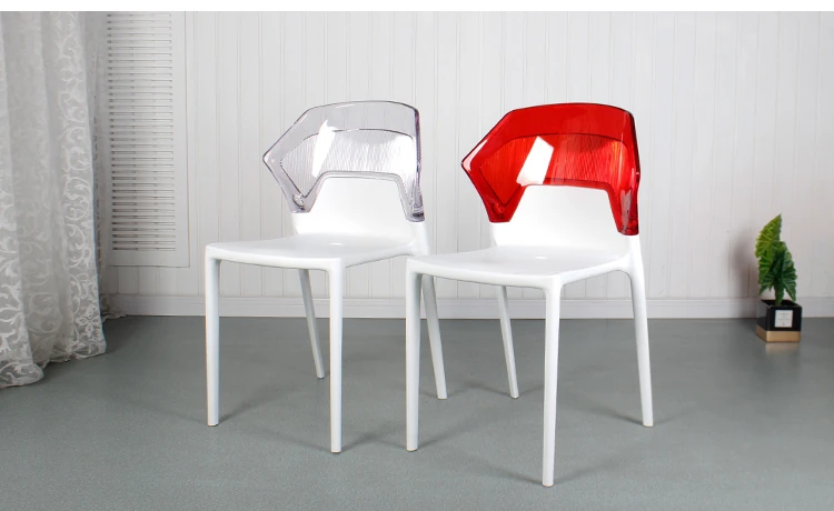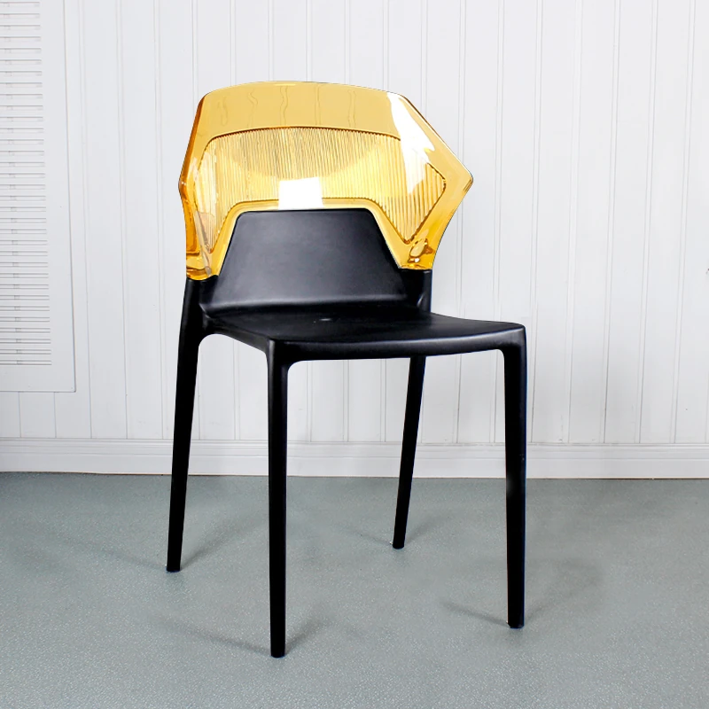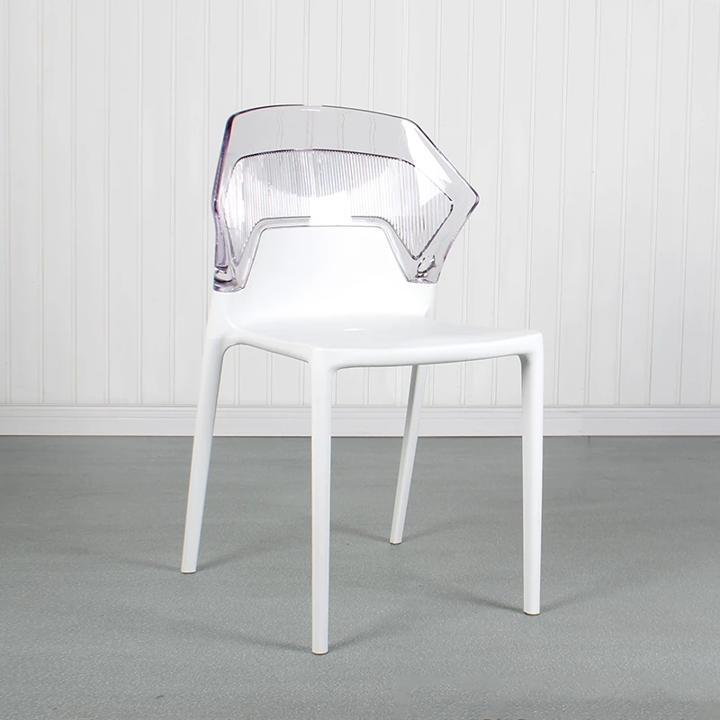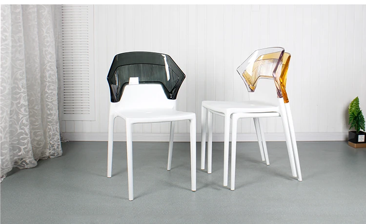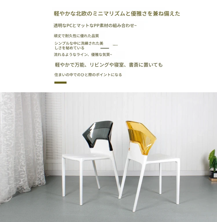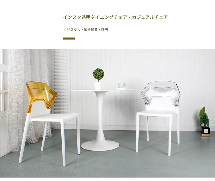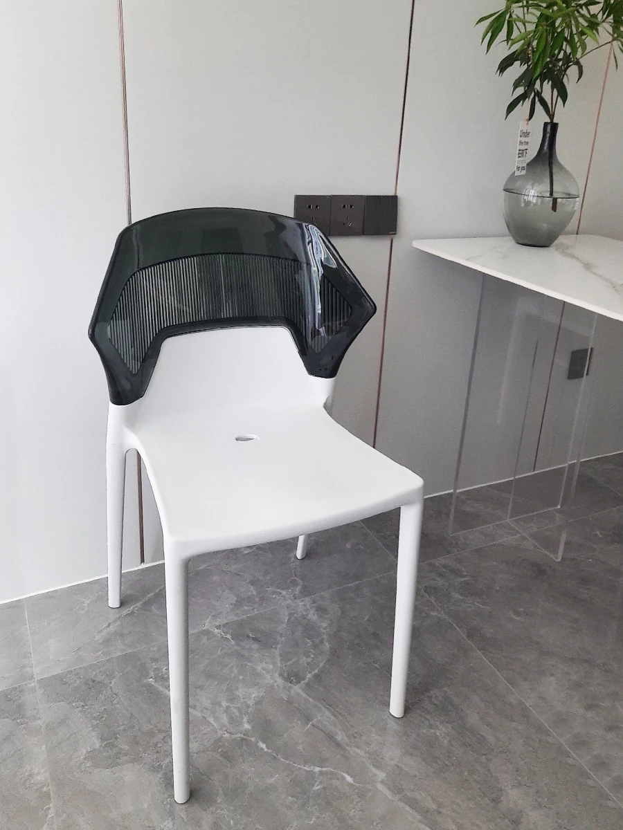 北欧風クリエイティブダイニングチェア - シンプルで透明なデザイン、快適なリラックスチェア。屋外での使用にも最適!重ねて収納可能なプラスチック製、アクリル背もたれ付き。おしゃれなインテリアにぴったり!