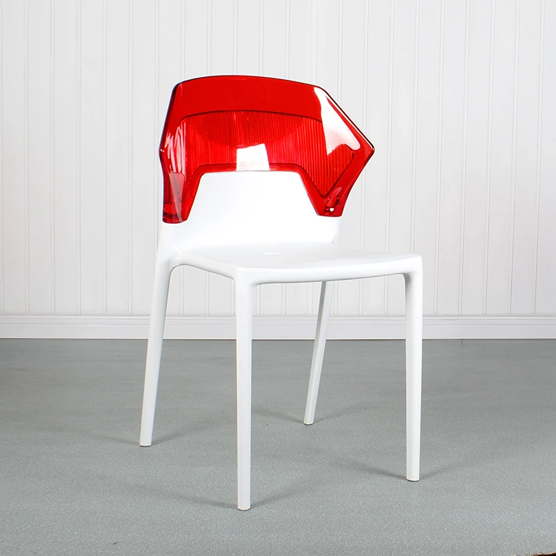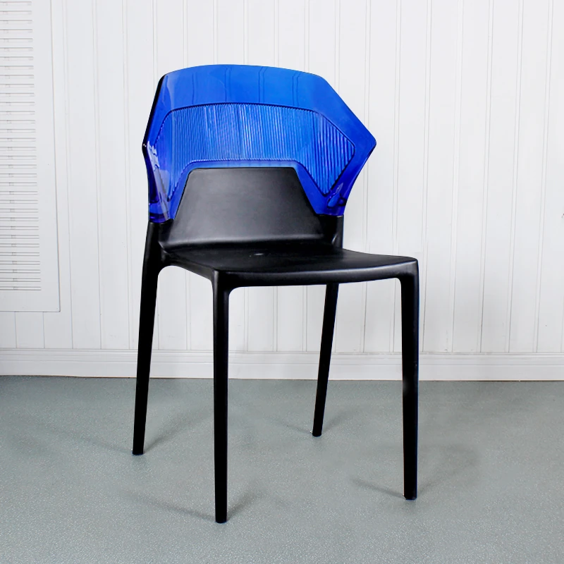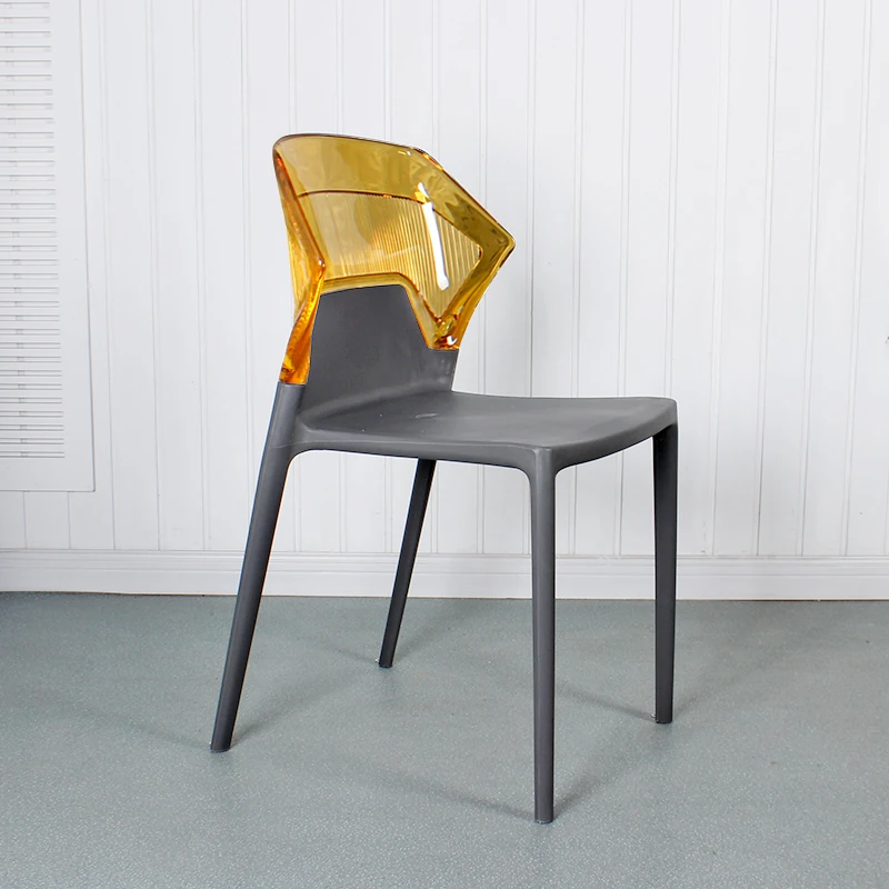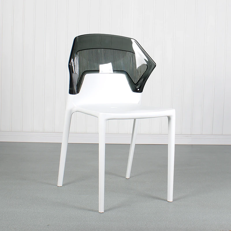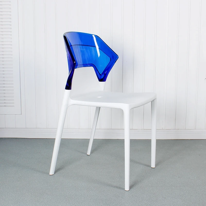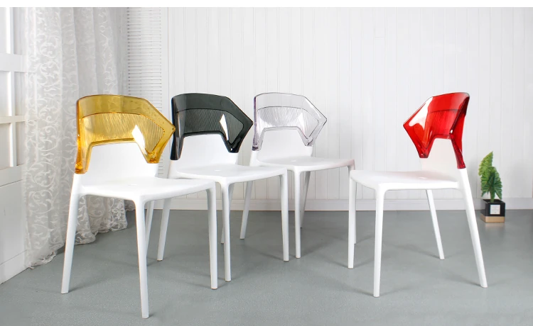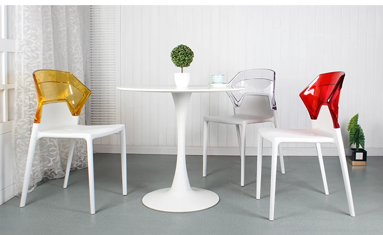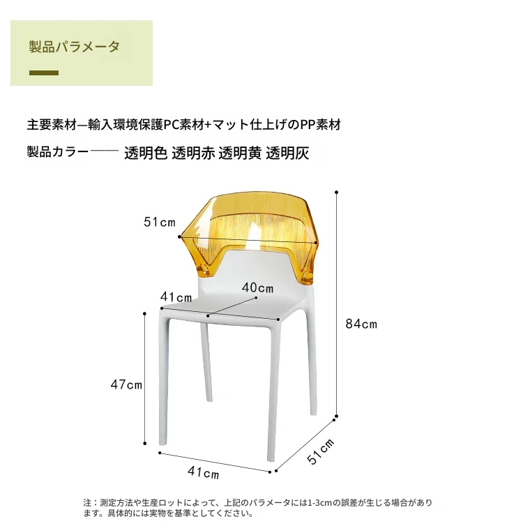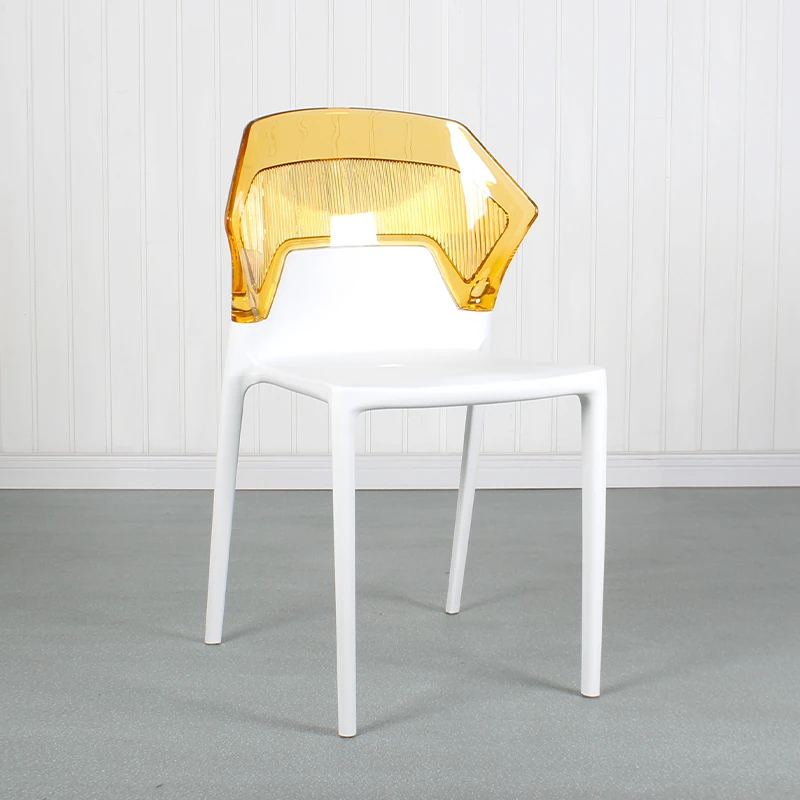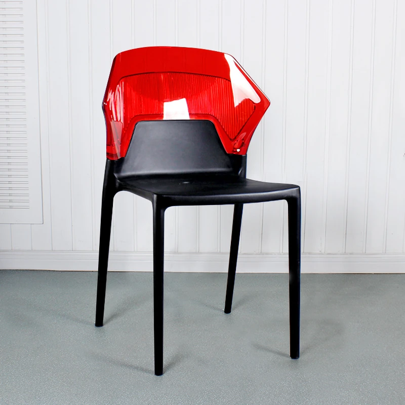 北欧風クリエイティブダイニングチェア - シンプルで透明なデザイン、快適なリラックスチェア。屋外での使用にも最適!重ねて収納可能なプラスチック製、アクリル背もたれ付き。おしゃれなインテリアにぴったり!