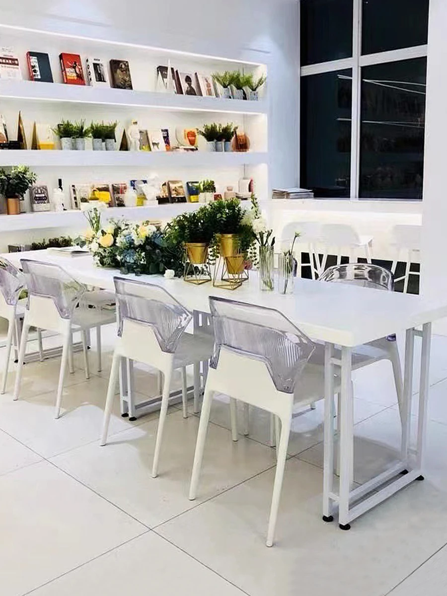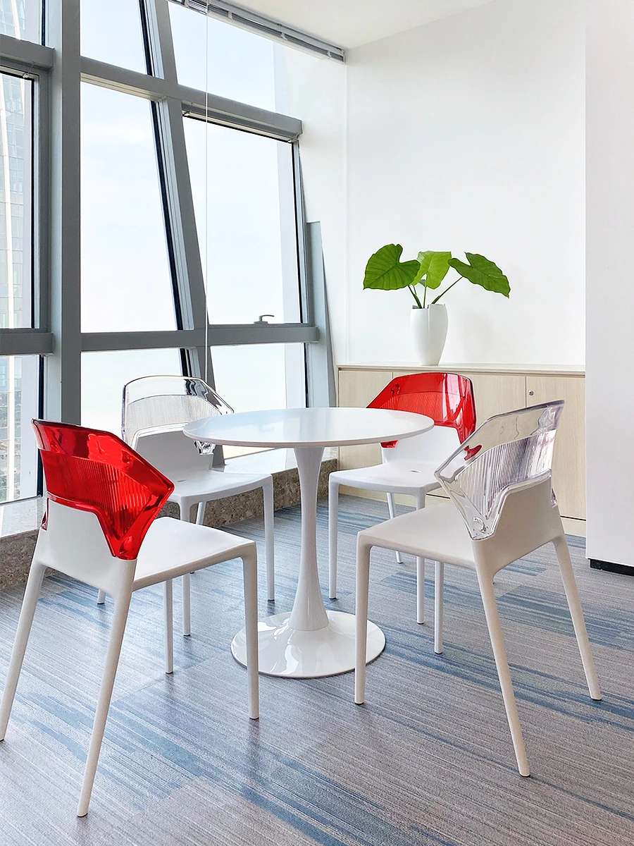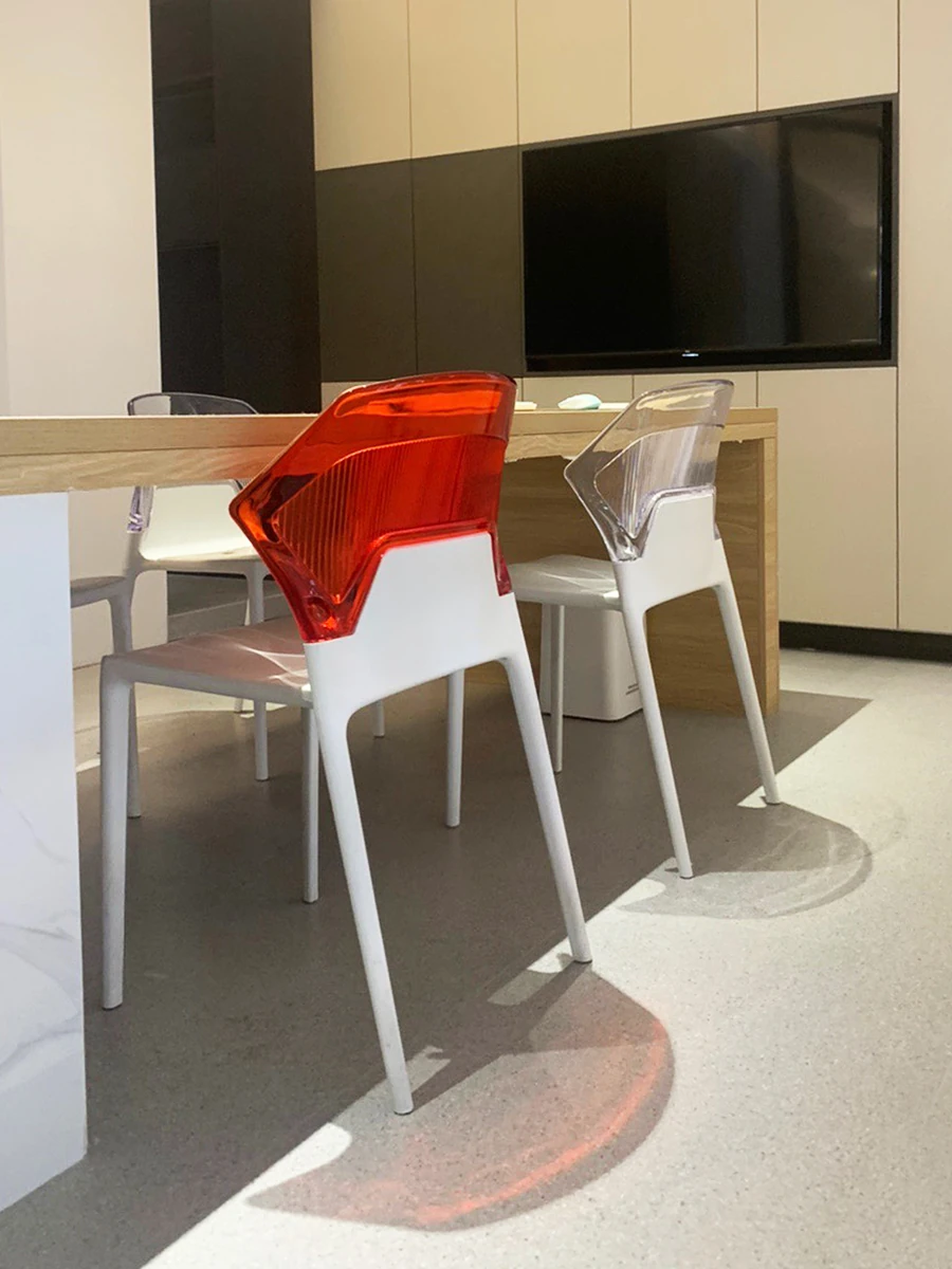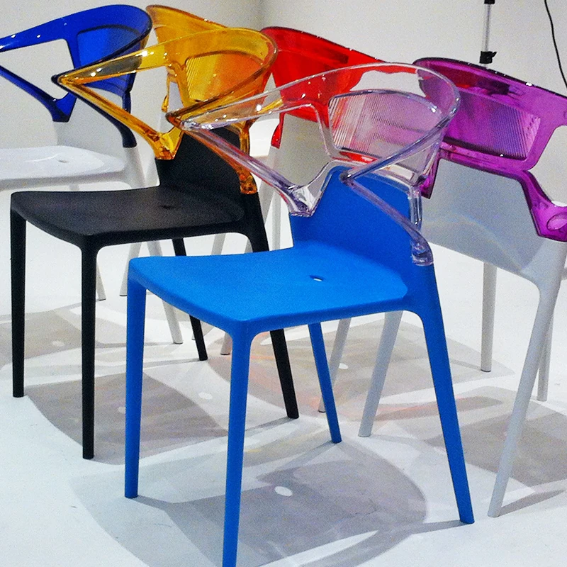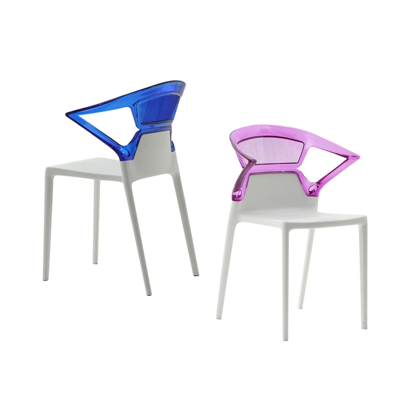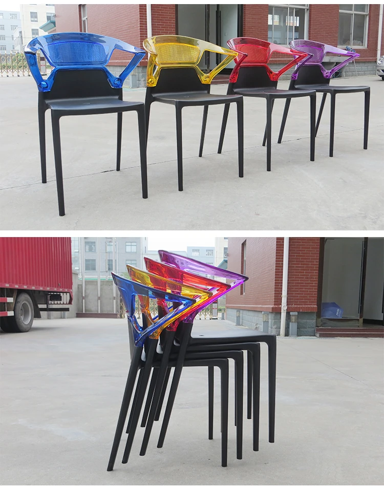 北欧風クリエイティブダイニングチェア - シンプルで透明なデザイン、快適なリラックスチェア。屋外での使用にも最適!重ねて収納可能なプラスチック製、アクリル背もたれ付き。おしゃれなインテリアにぴったり!