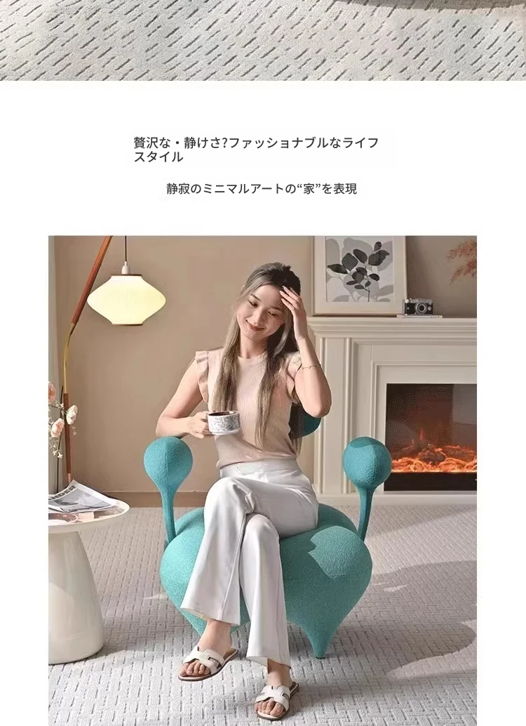 北欧デザインのミニマリストクリエイティブ軽奢スタイル!おしゃれなリビングにぴったりのトレンド感あふれる一人掛けソファチェア、リラックスできる休憩スペースを演出します。