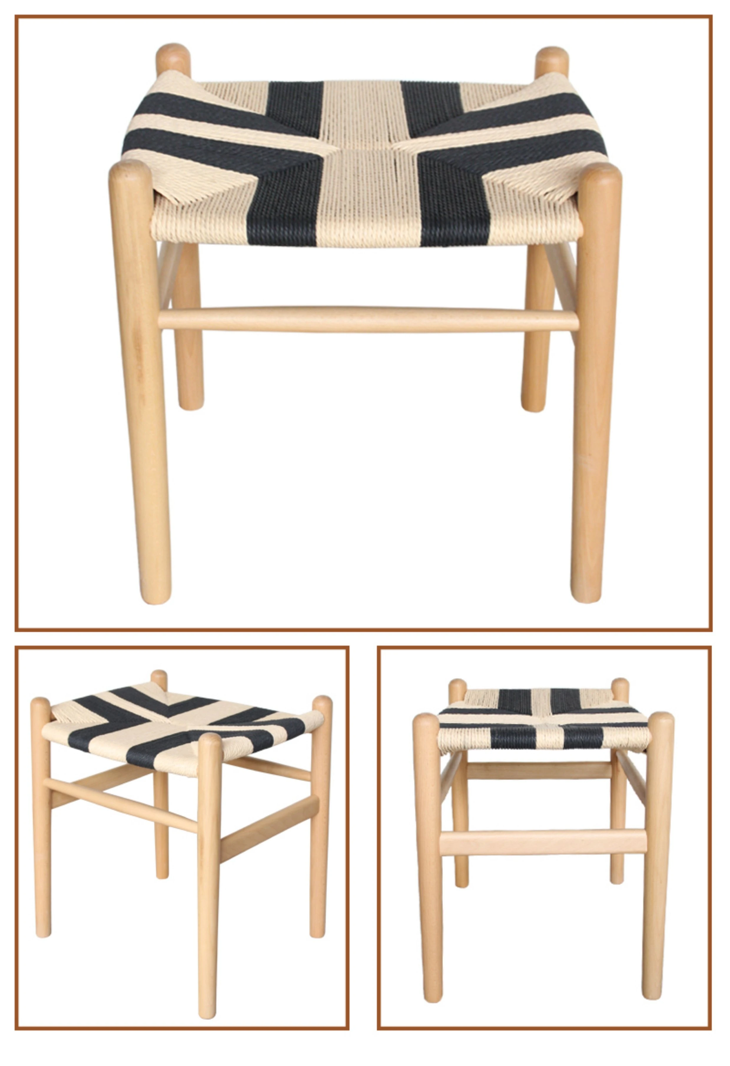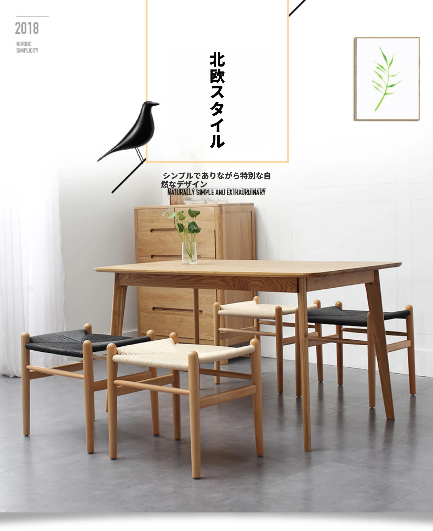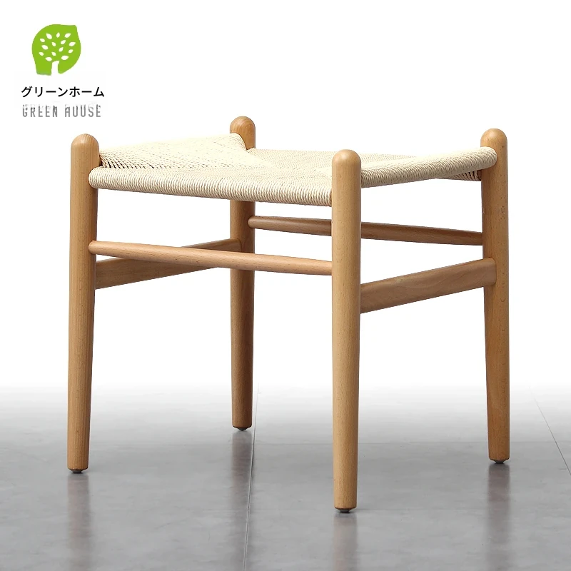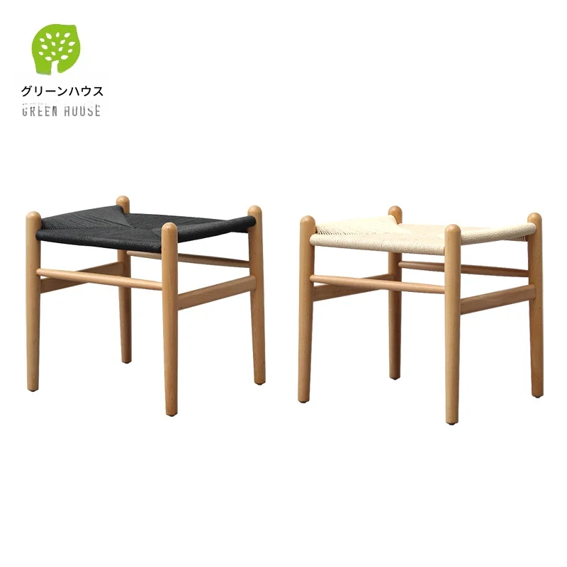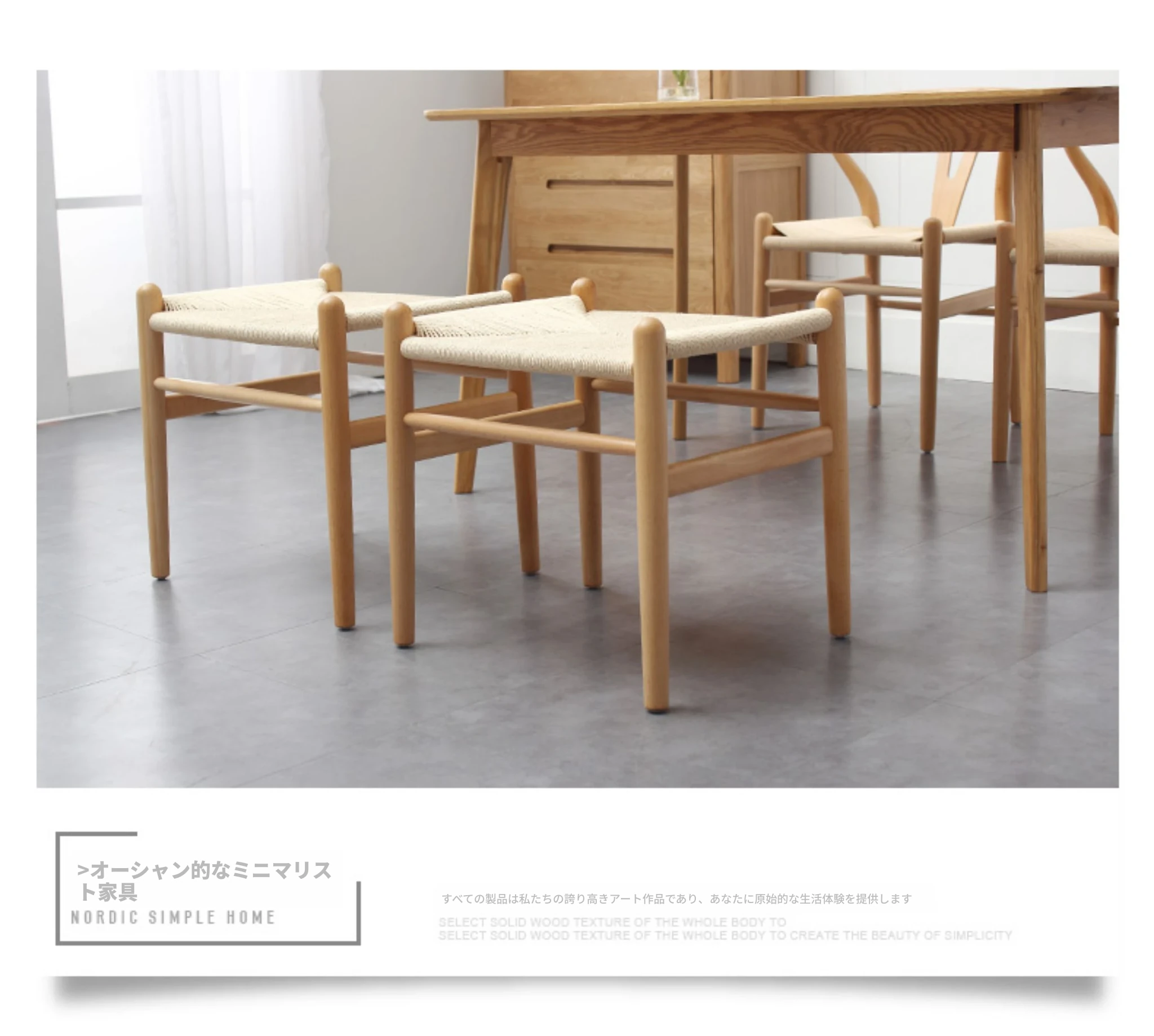 北欧スタイルのシンプルなロースツール - 天然木と麻ロープの組み合わせ!和風の長椅子や玄関用スツール、ダイニングチェア、メイクアップスツールとしても大活躍!おしゃれな民宿にぴったり!