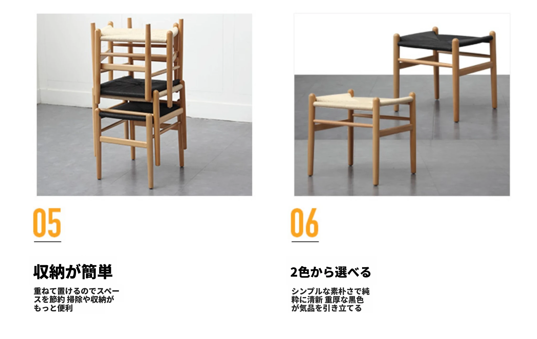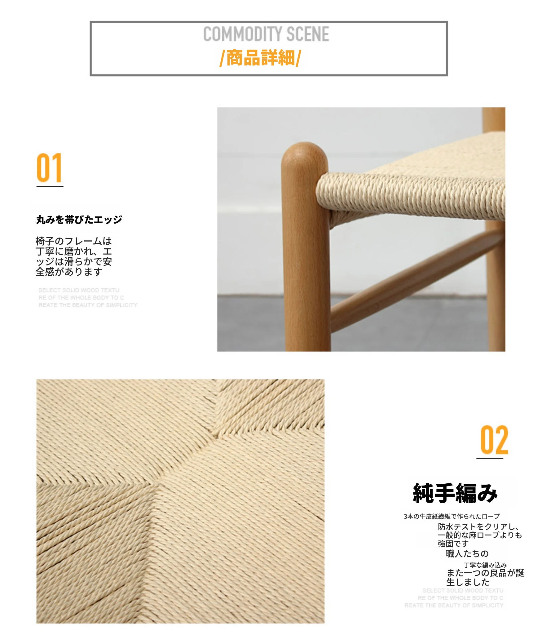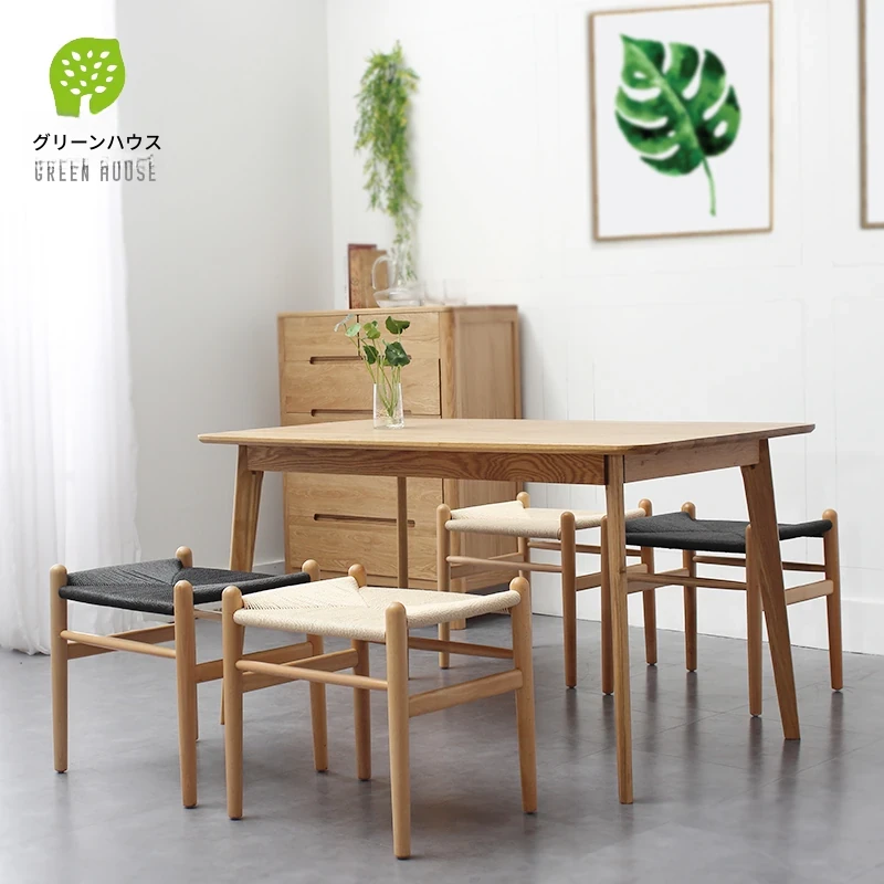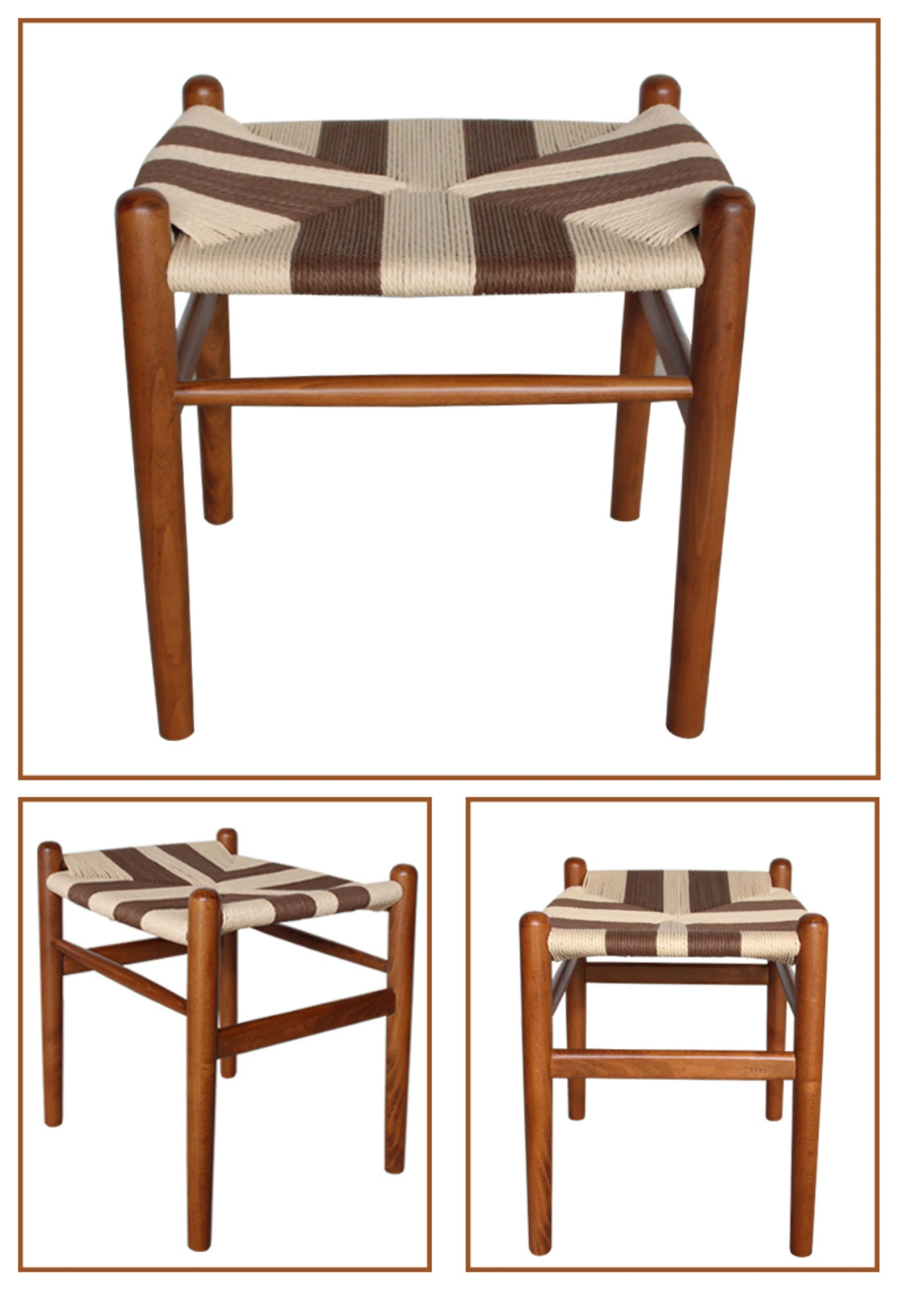 北欧スタイルのシンプルなロースツール - 天然木と麻ロープの組み合わせ!和風の長椅子や玄関用スツール、ダイニングチェア、メイクアップスツールとしても大活躍!おしゃれな民宿にぴったり!