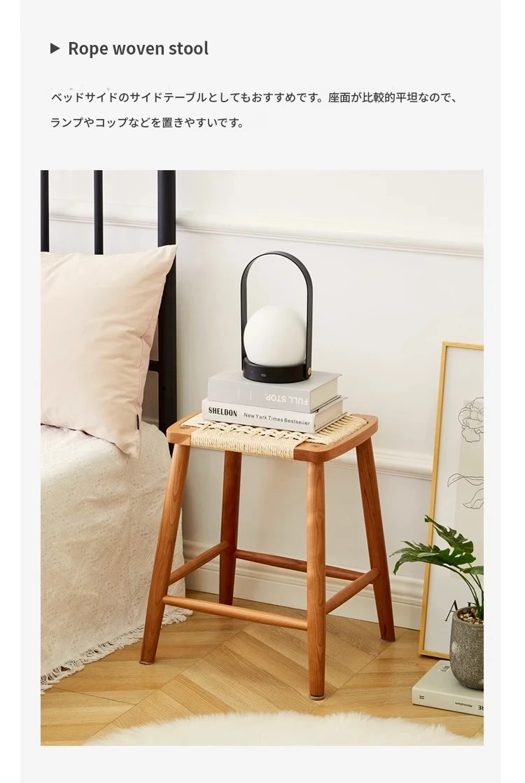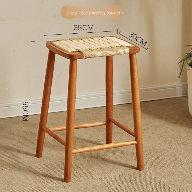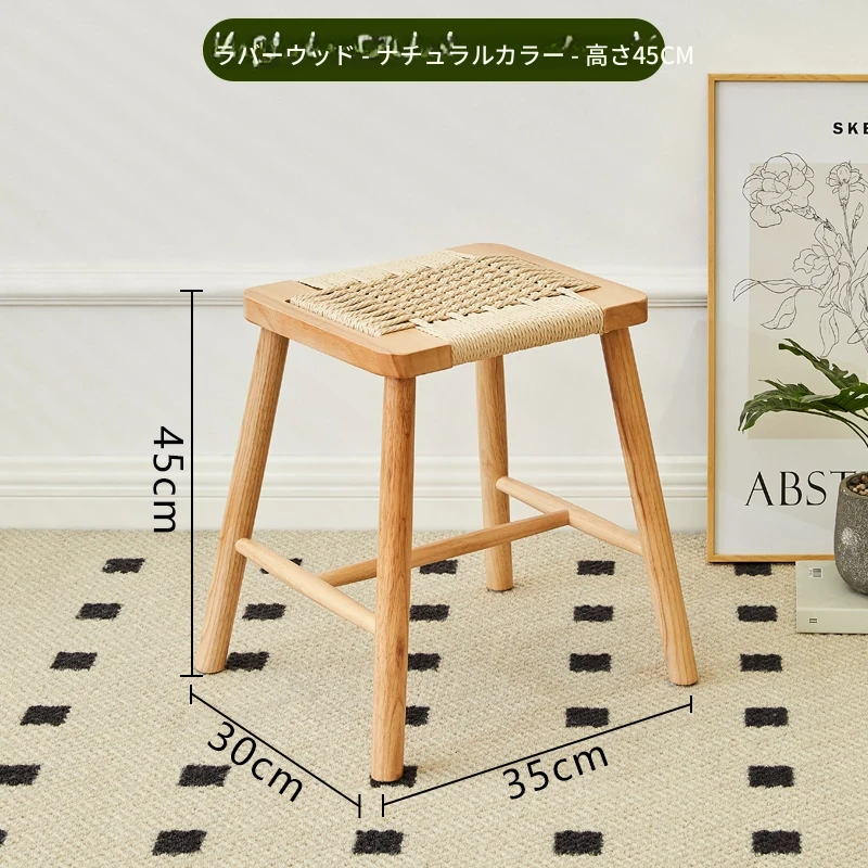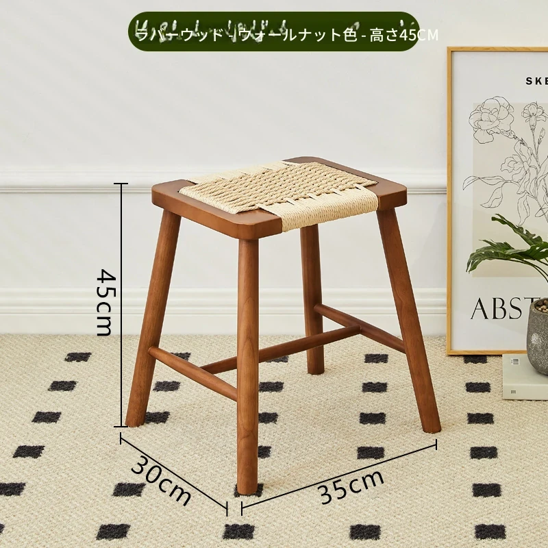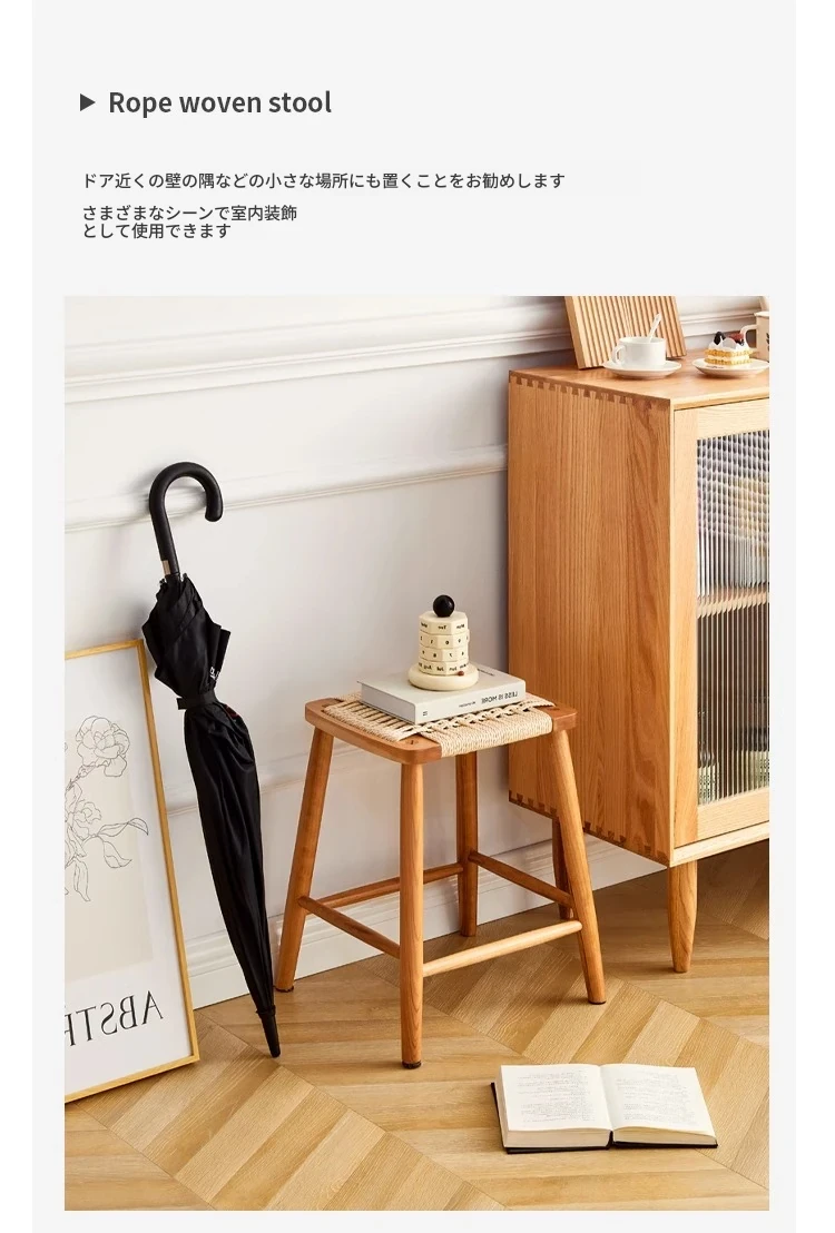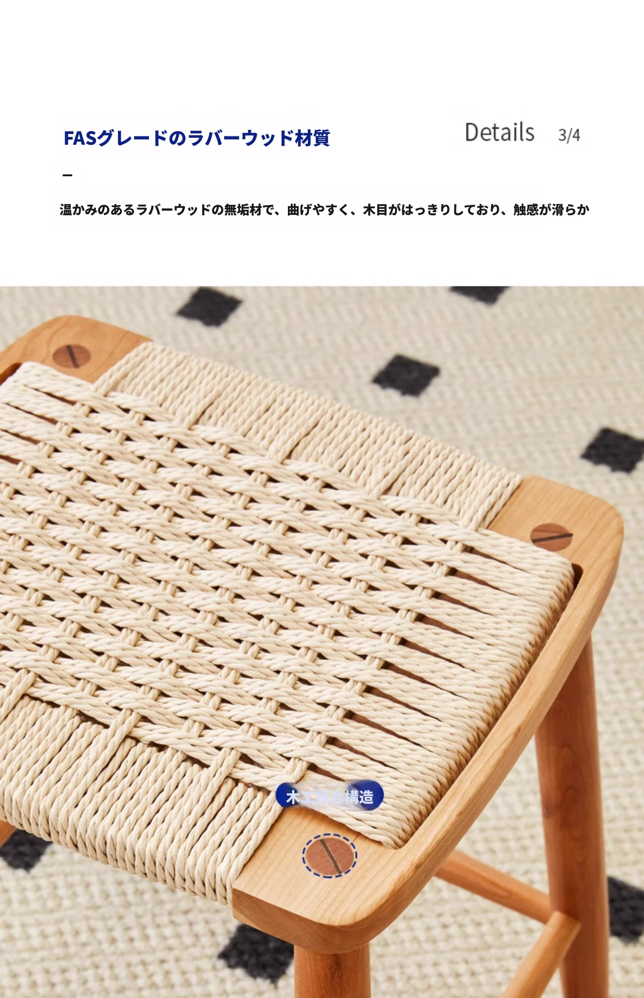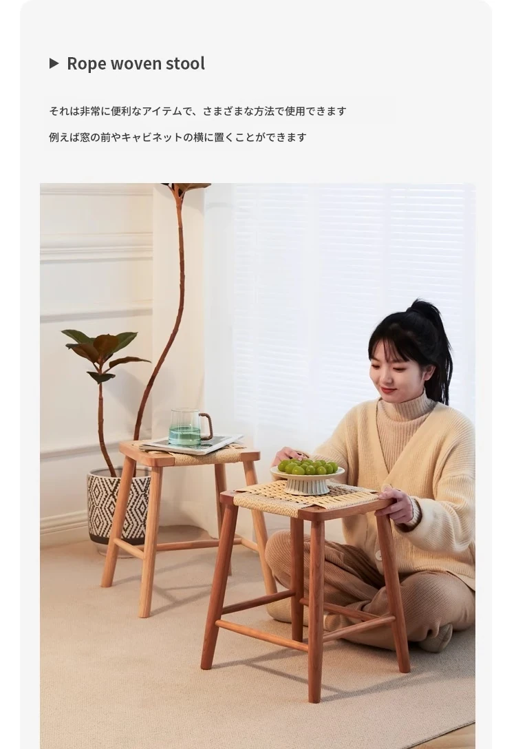 北欧風の天然木製ロープ編みスツール|モダンでシンプルなデザインのバースツール、ドレッシングスツール、靴を履くためのスツール、高脚椅子、ダイニングチェア、ラタン編みのバーカウンターチェア!おしゃれで機能的なインテリアにぴったり!