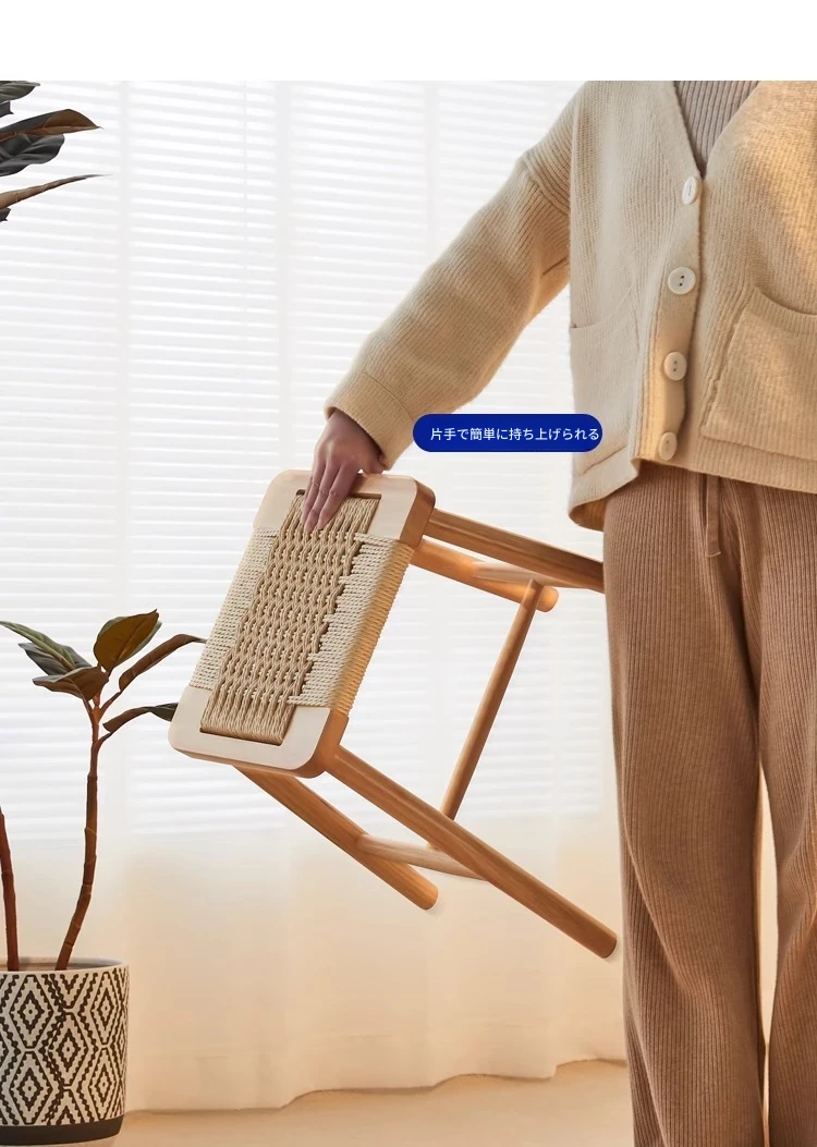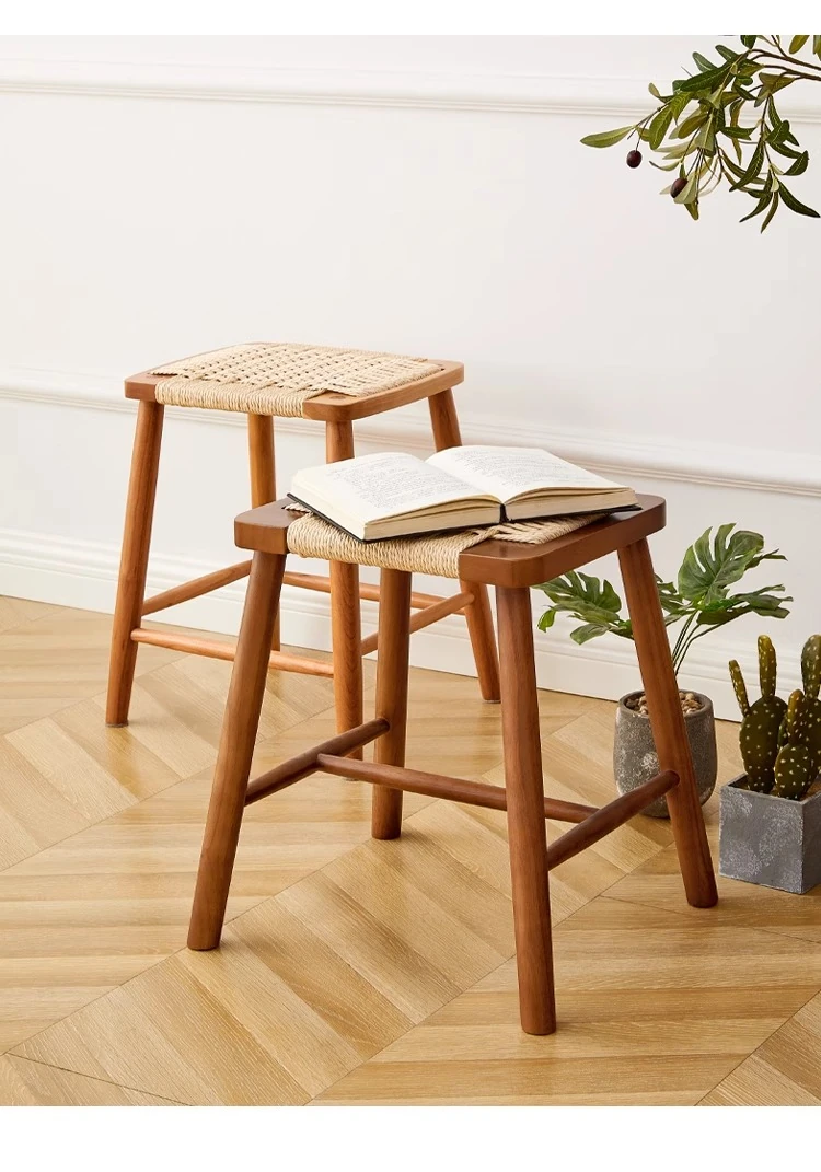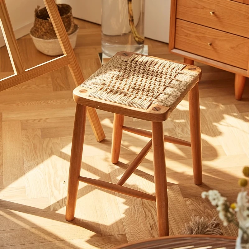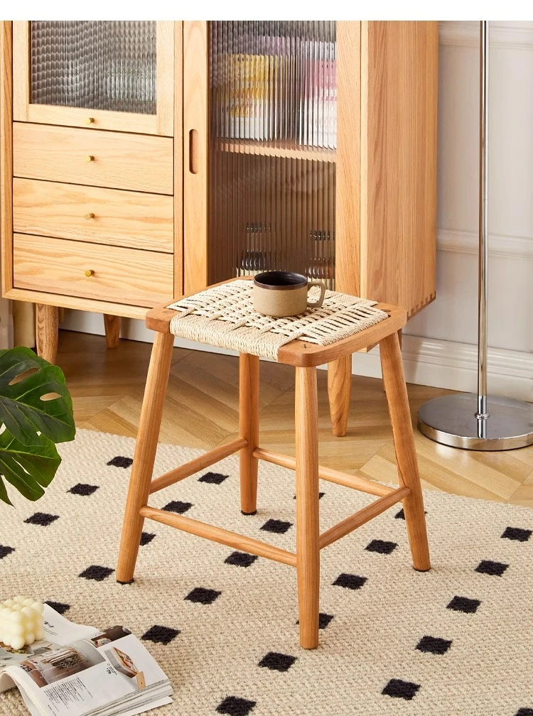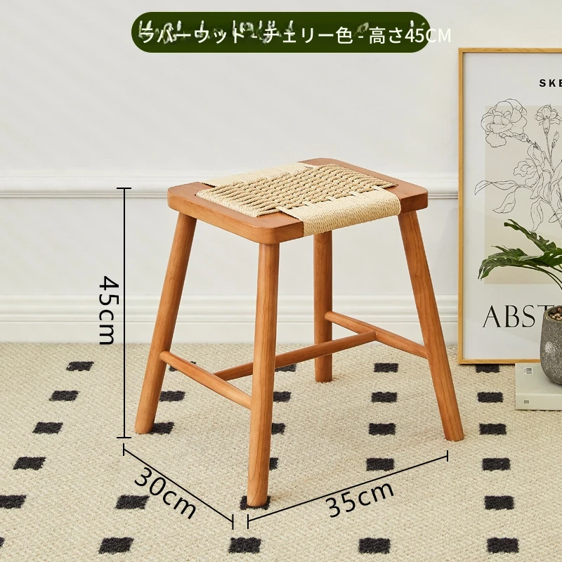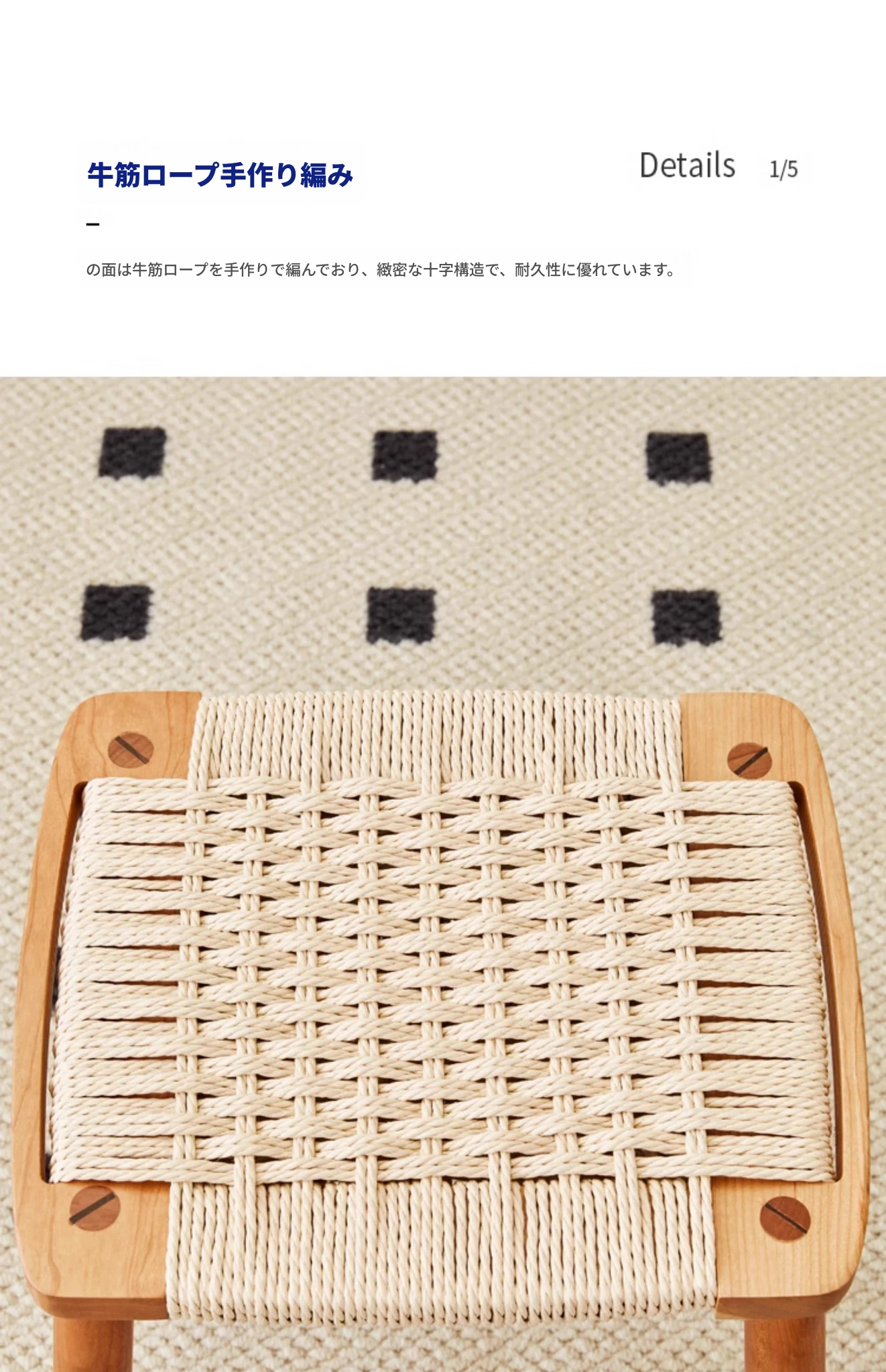 北欧風の天然木製ロープ編みスツール|モダンでシンプルなデザインのバースツール、ドレッシングスツール、靴を履くためのスツール、高脚椅子、ダイニングチェア、ラタン編みのバーカウンターチェア!おしゃれで機能的なインテリアにぴったり!