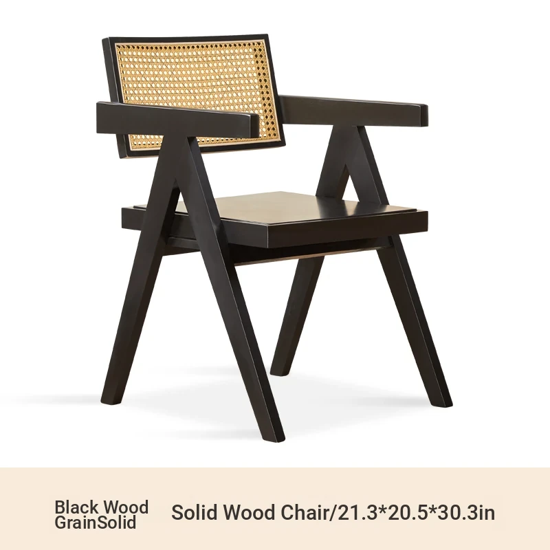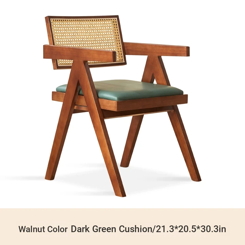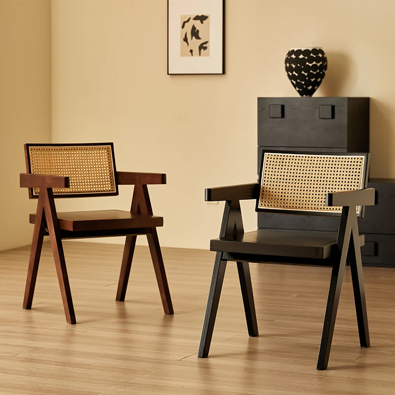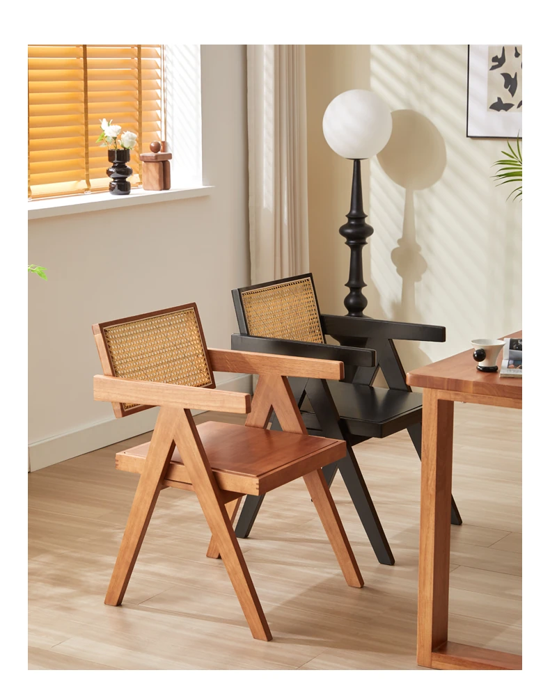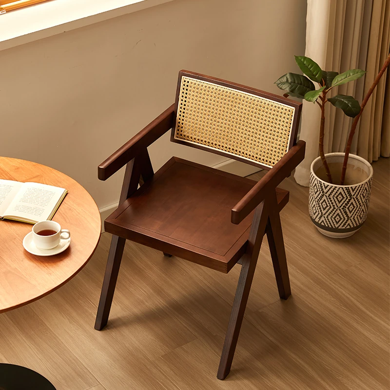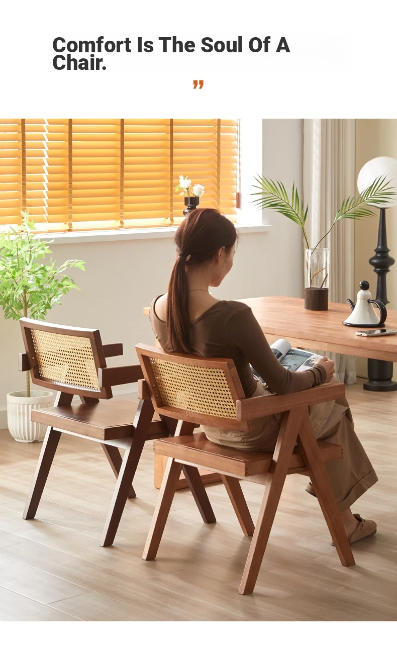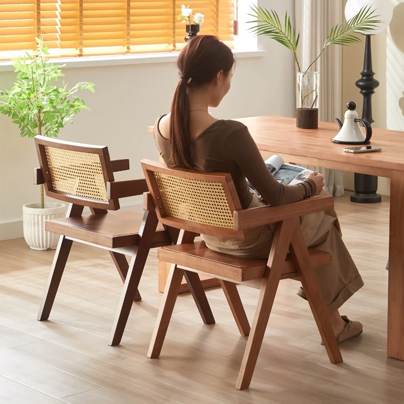 Solid Wood Dining Chair - Home Use Chandigarh Style with Armrests and Backrest, Vintage Rattan Accent Chair, Nordic Woven Design, Perfect for Relaxation and Dining Spaces