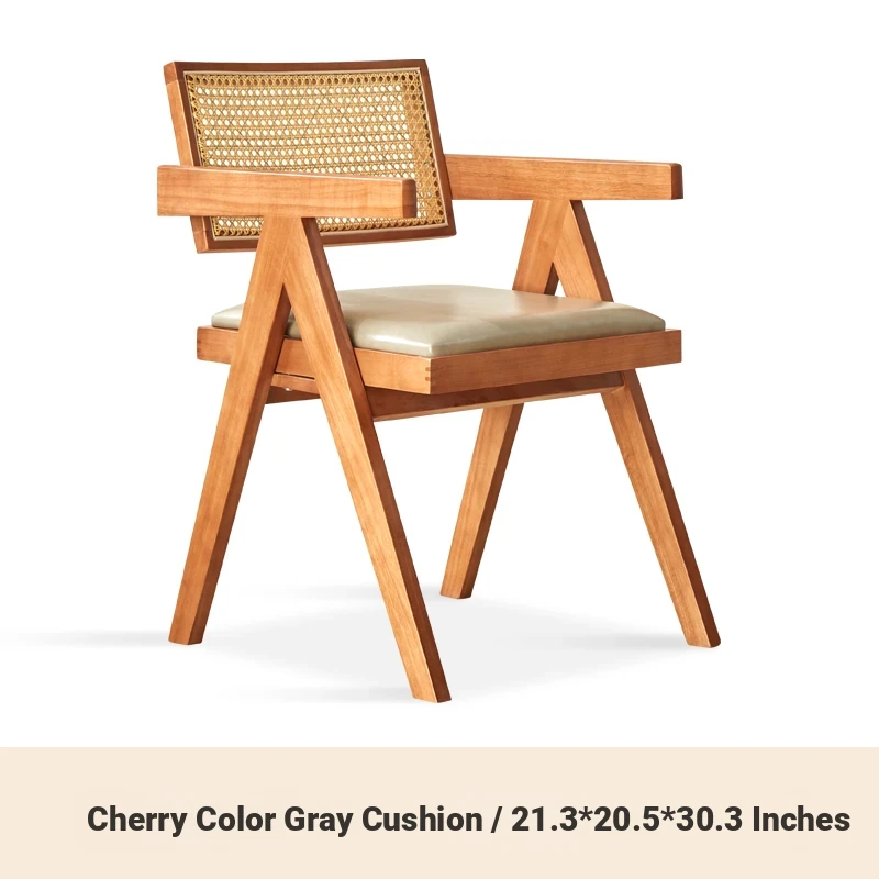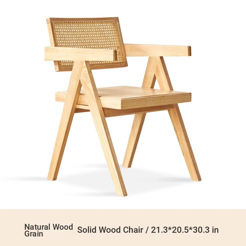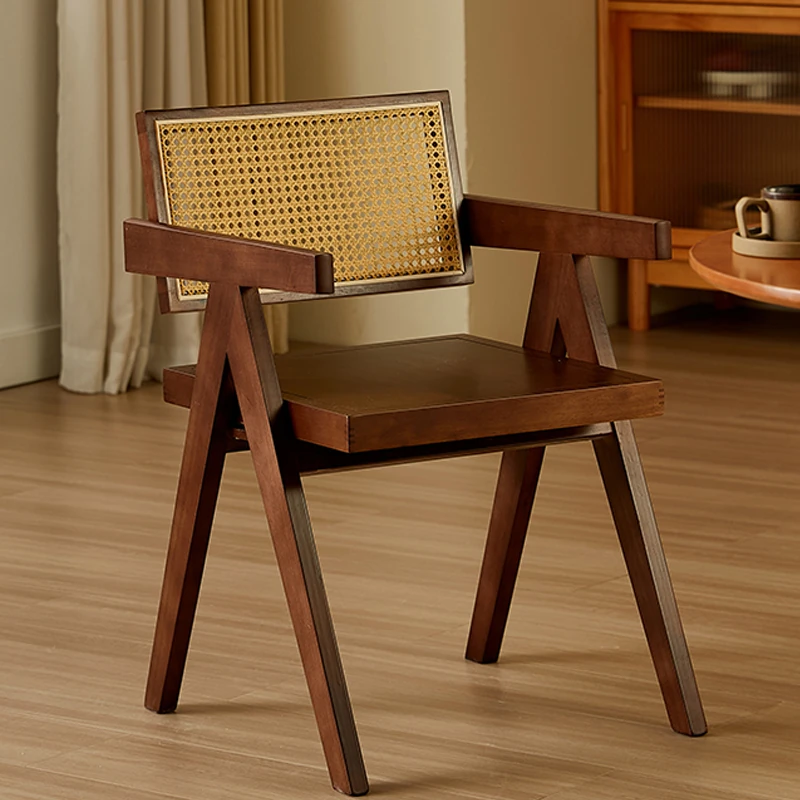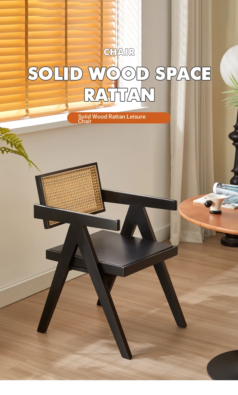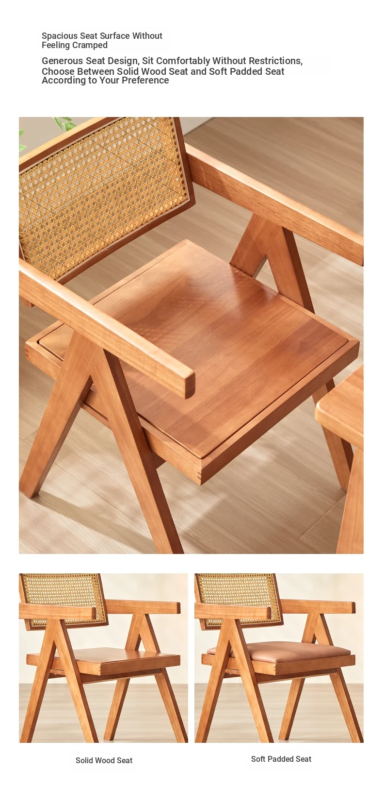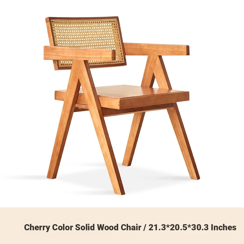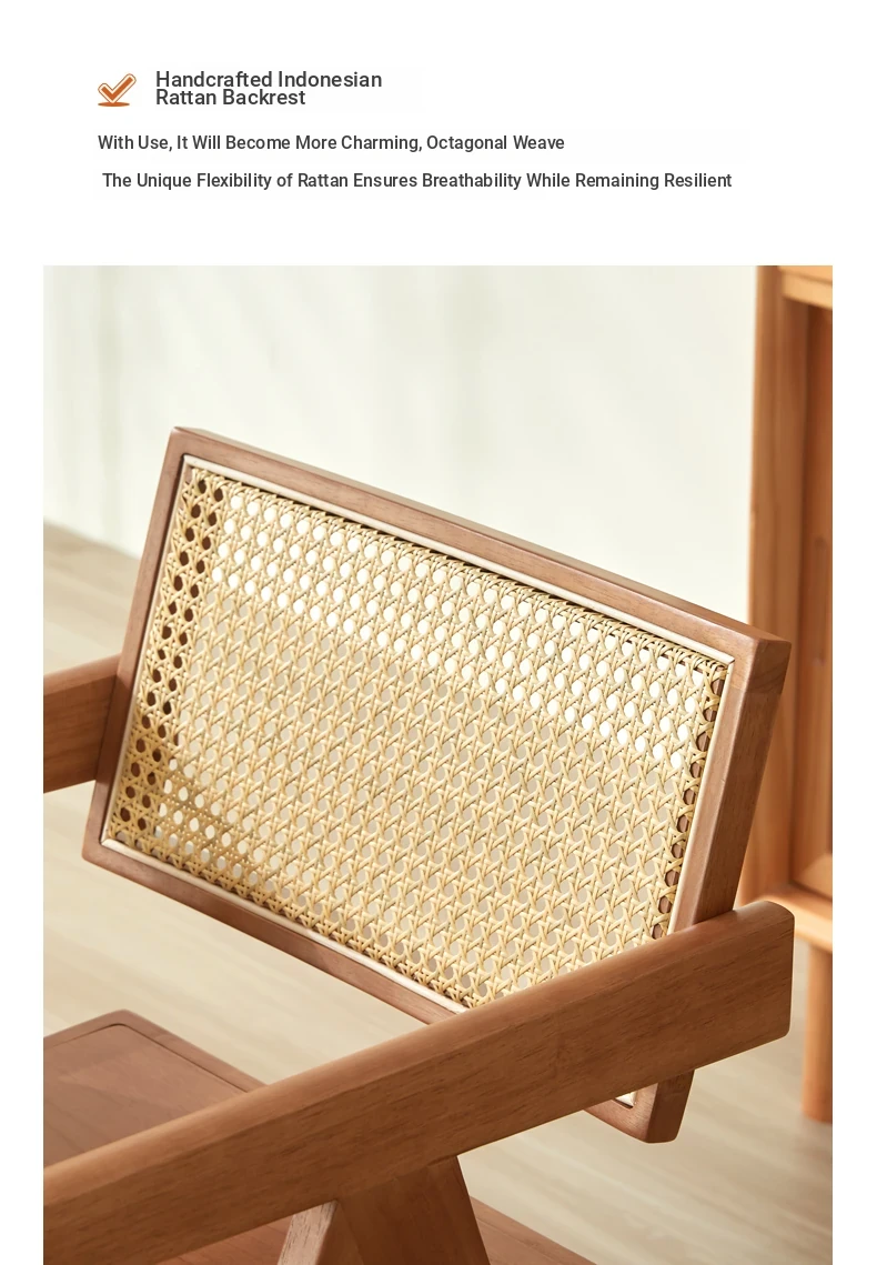 Solid Wood Dining Chair - Home Use Chandigarh Style with Armrests and Backrest, Vintage Rattan Accent Chair, Nordic Woven Design, Perfect for Relaxation and Dining Spaces