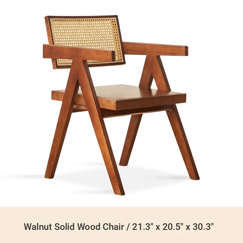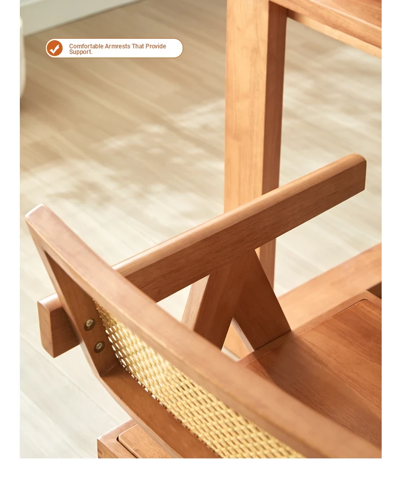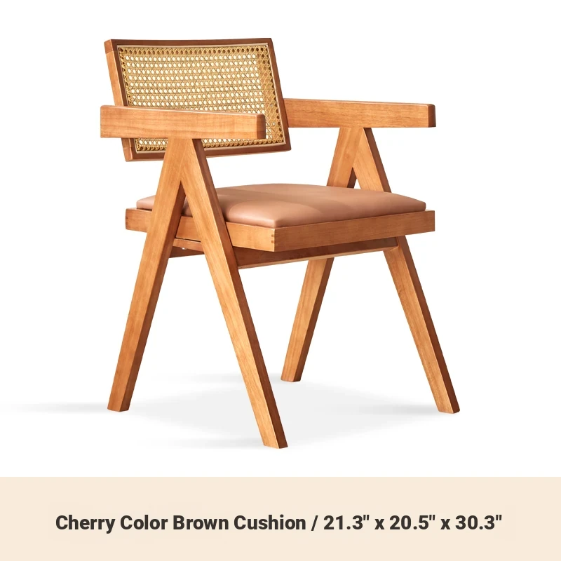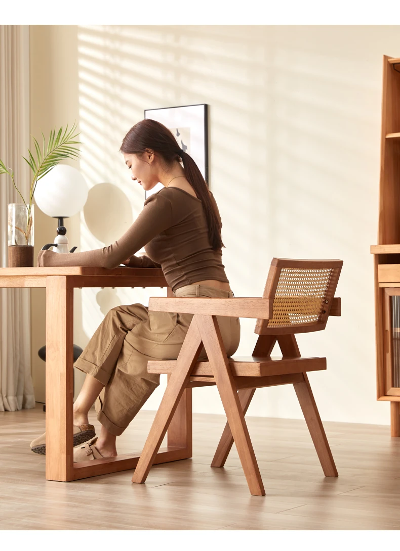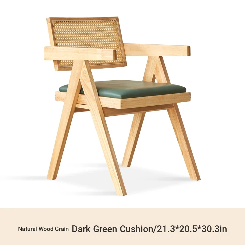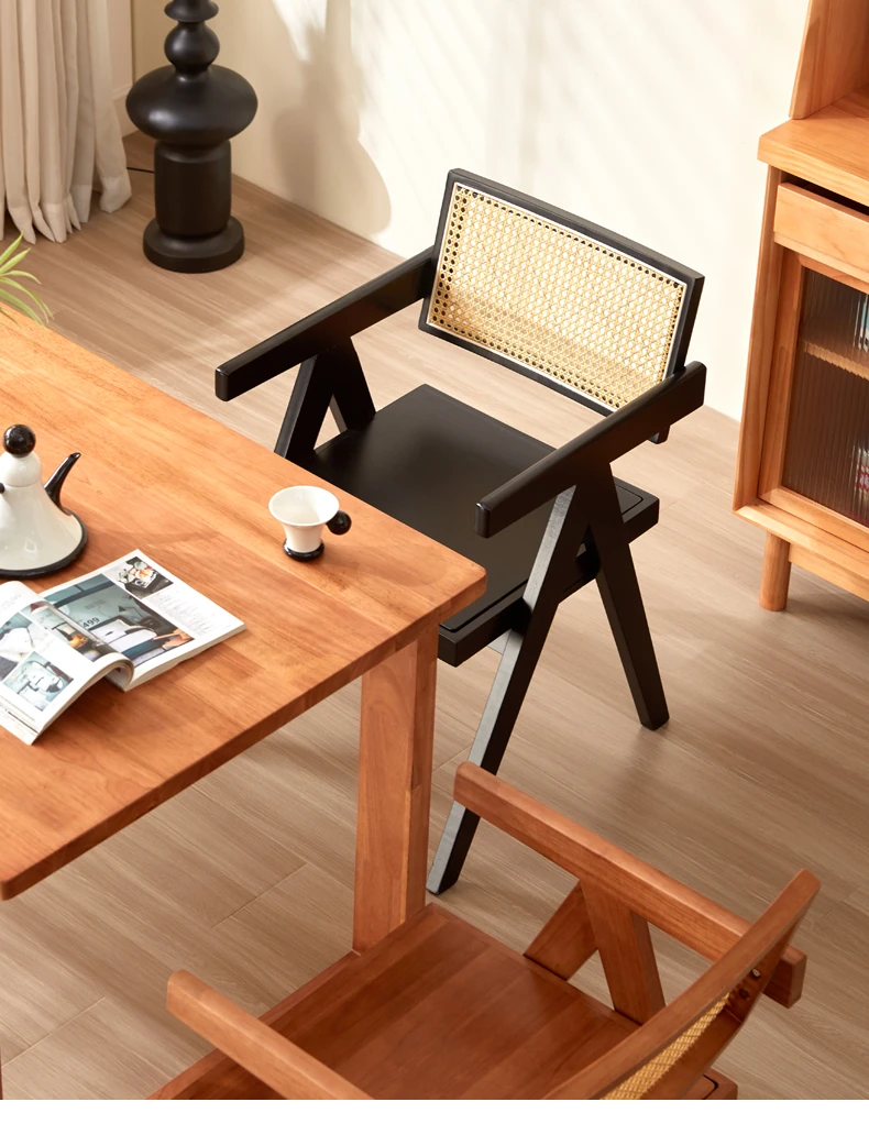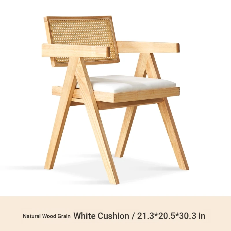 Solid Wood Dining Chair - Home Use Chandigarh Style with Armrests and Backrest, Vintage Rattan Accent Chair, Nordic Woven Design, Perfect for Relaxation and Dining Spaces