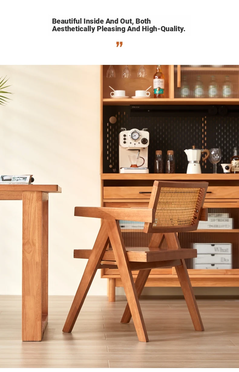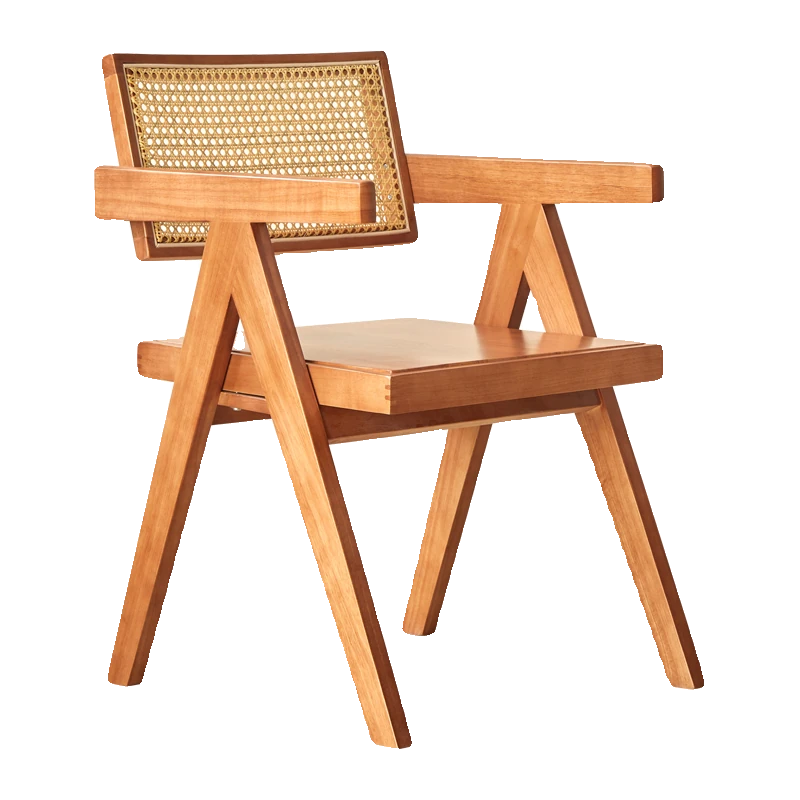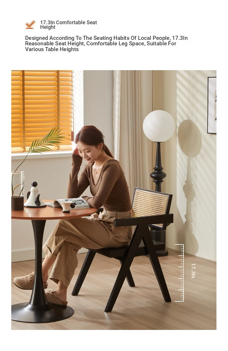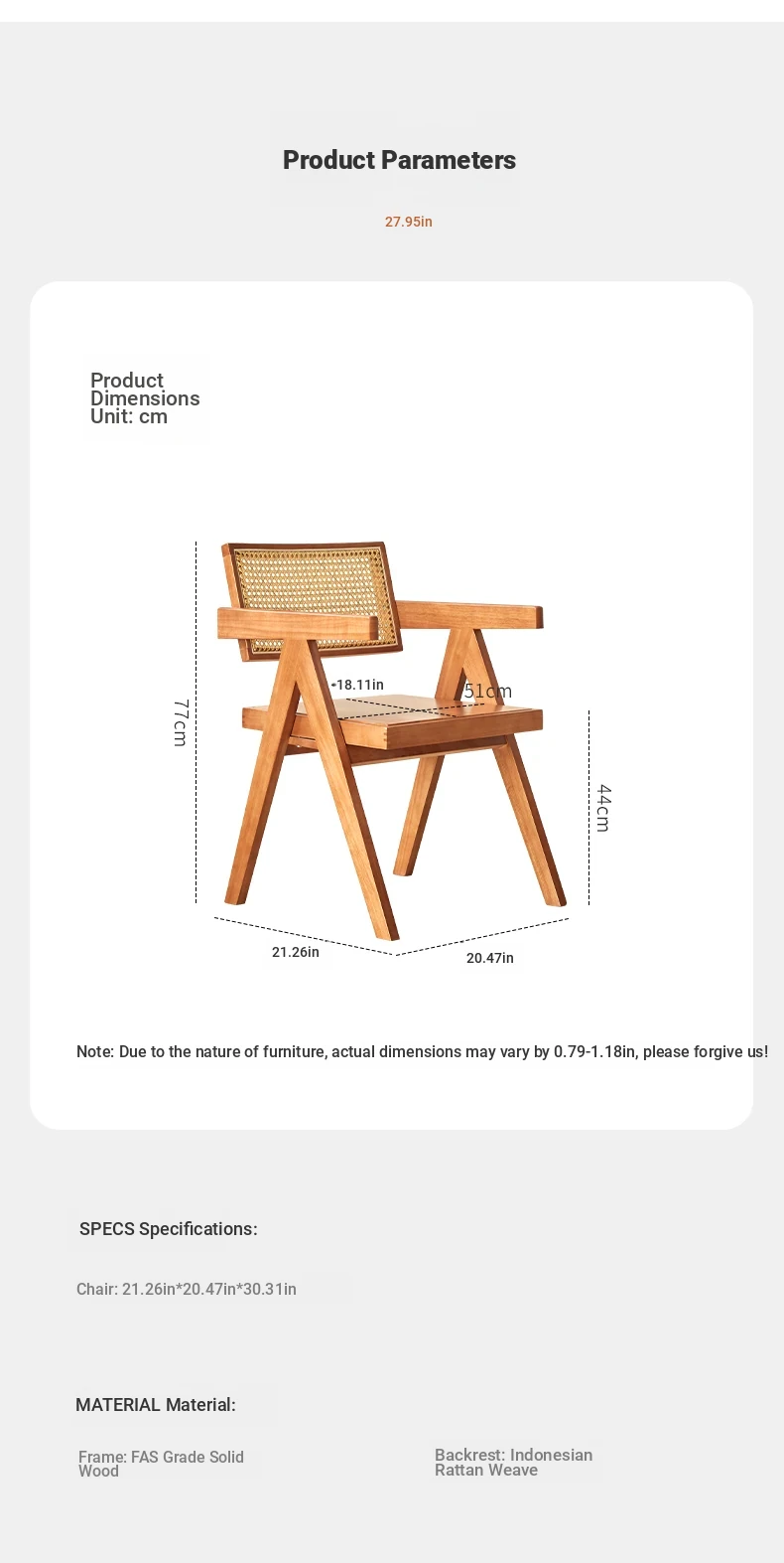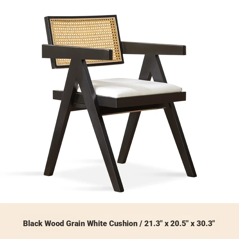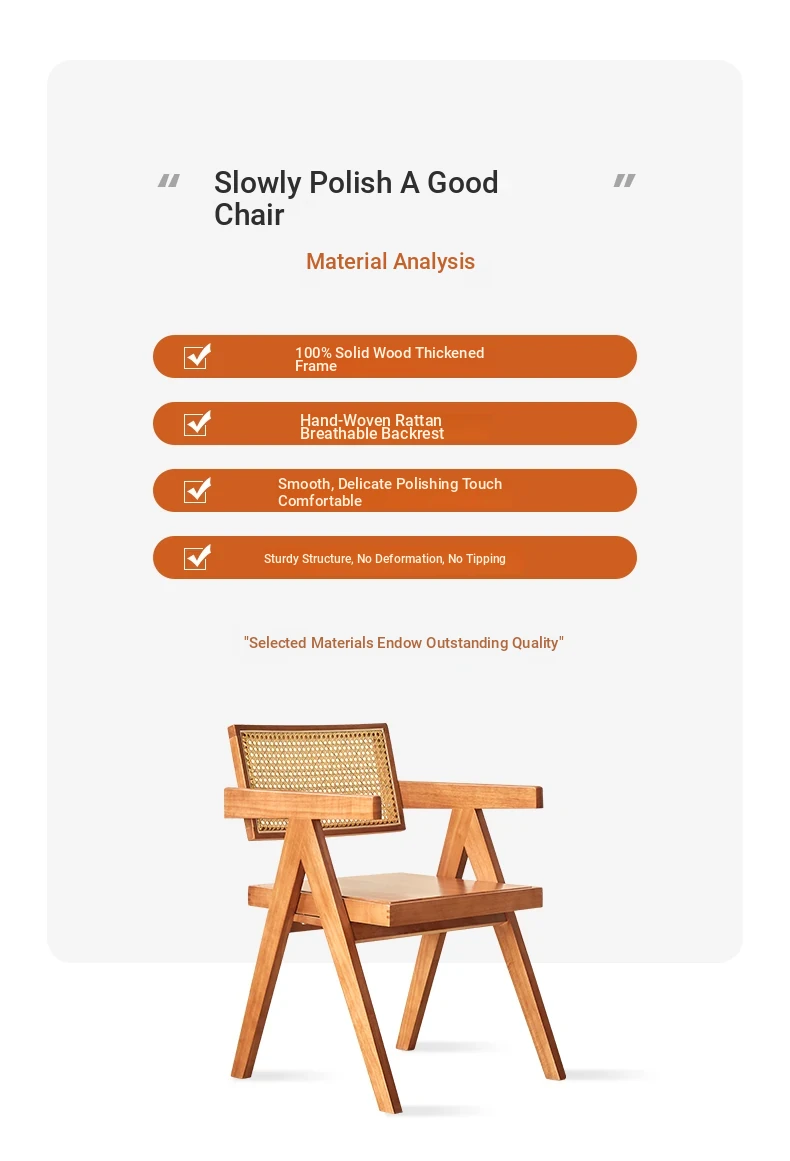 Solid Wood Dining Chair - Home Use Chandigarh Style with Armrests and Backrest, Vintage Rattan Accent Chair, Nordic Woven Design, Perfect for Relaxation and Dining Spaces