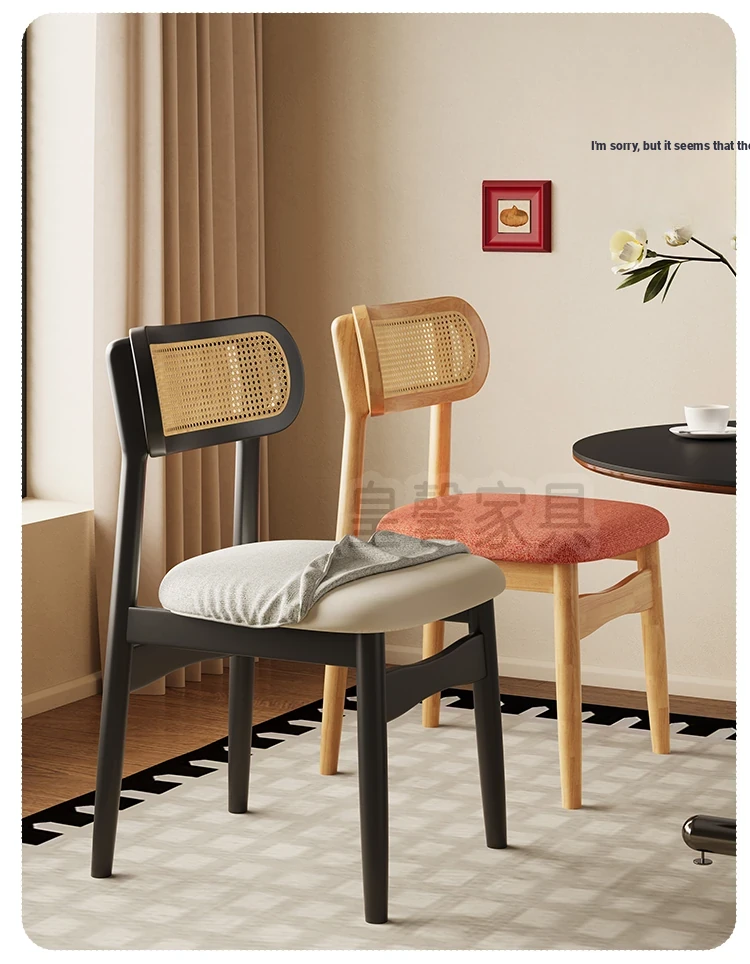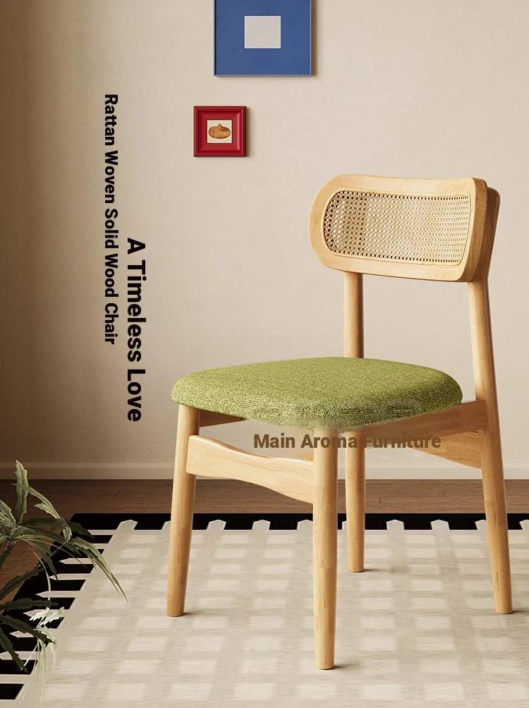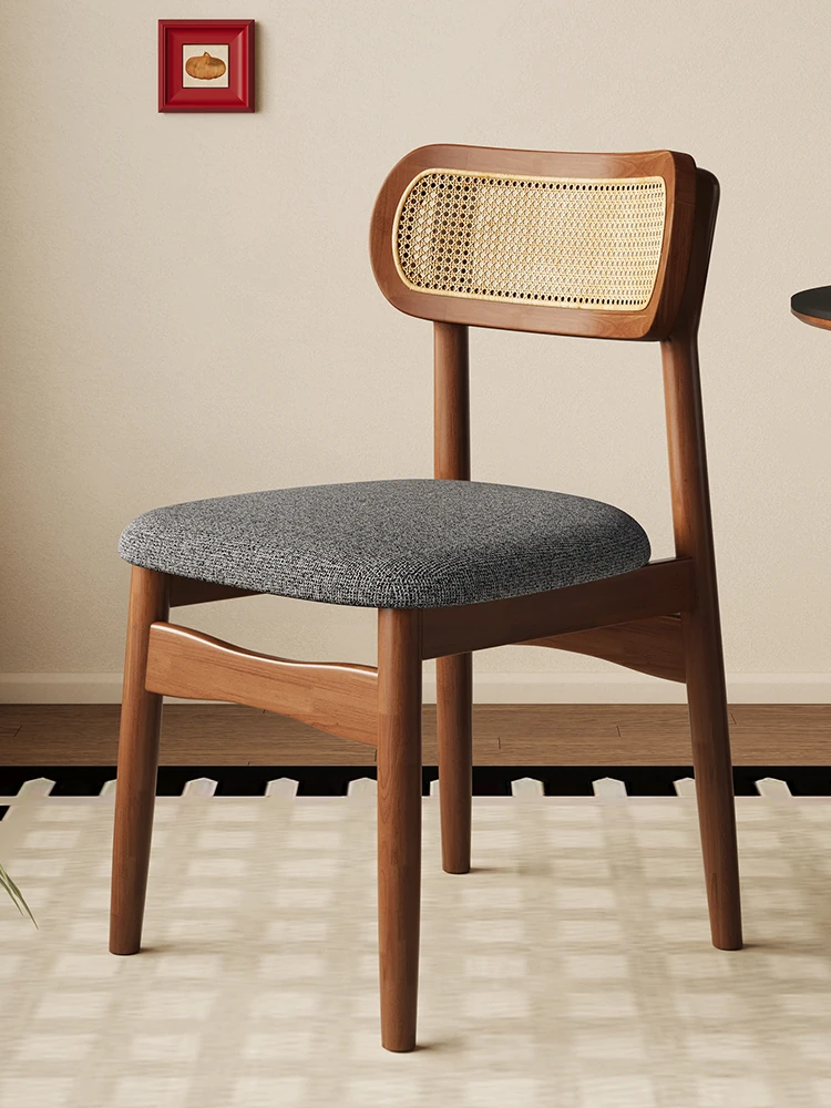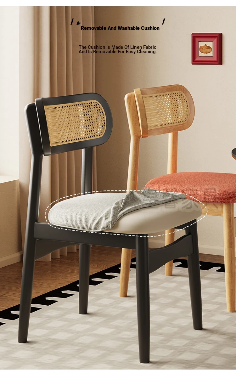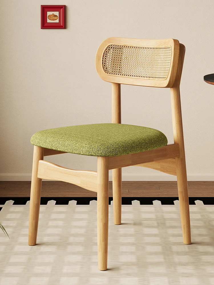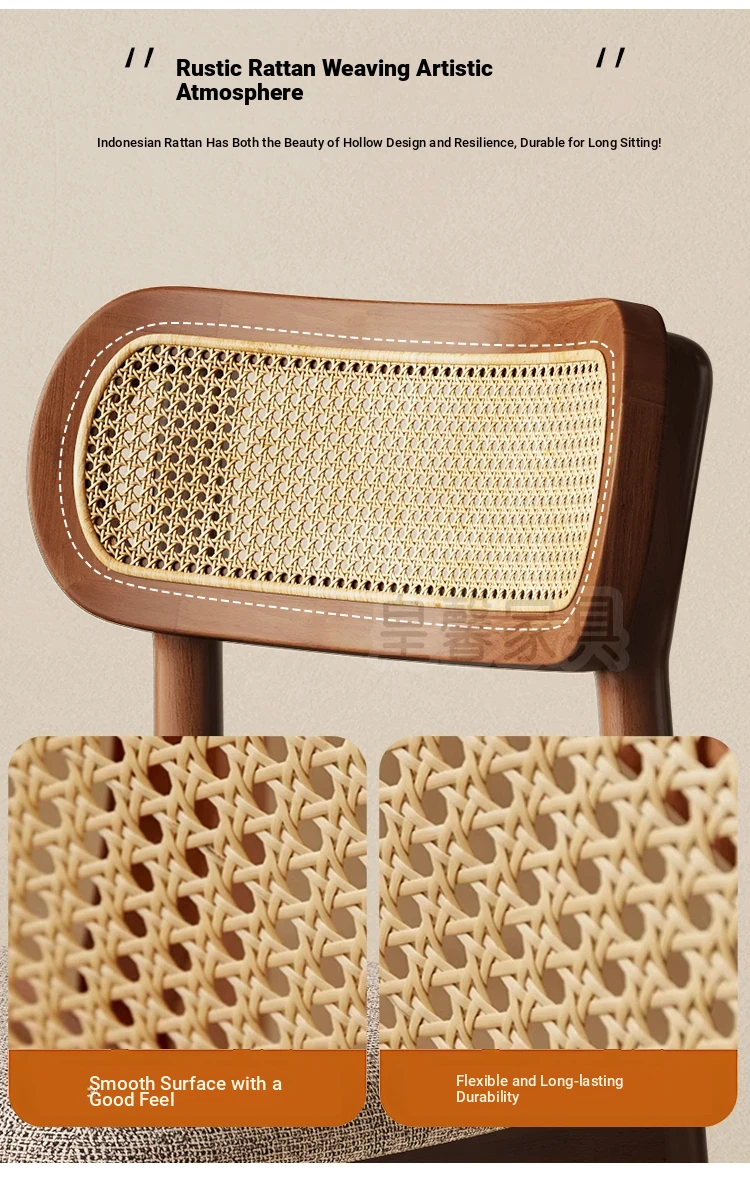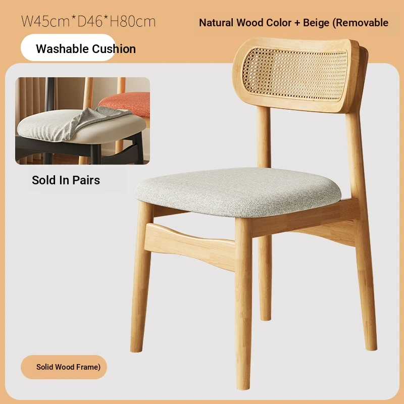Vintage Style Removable Wooden Dining Chair - French High-End Retro Lightweight Rattan Backrest Chair for Home Use, Perfect for Casual Dining Spaces