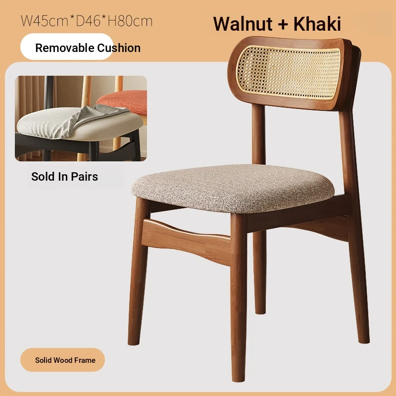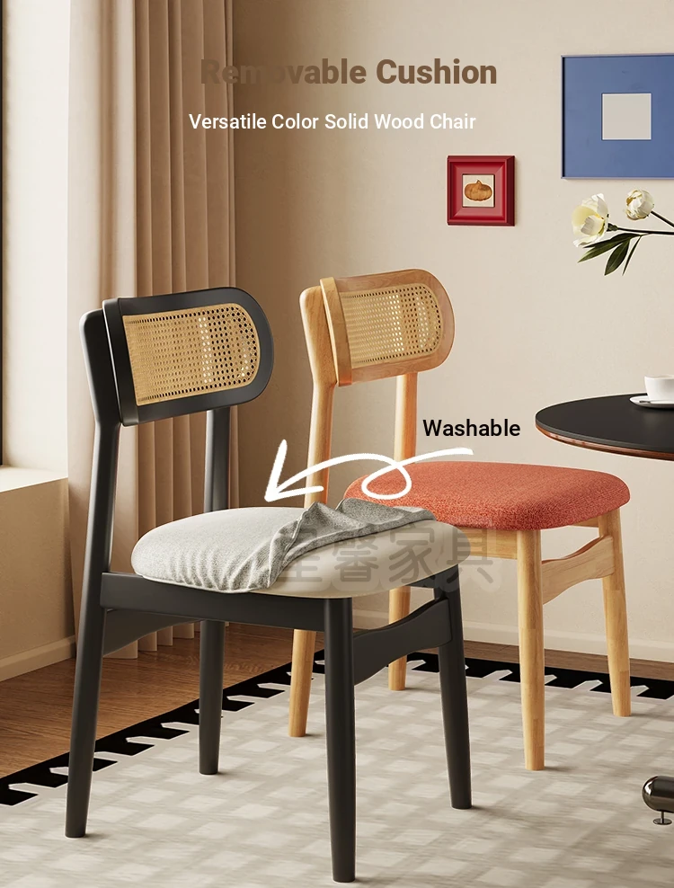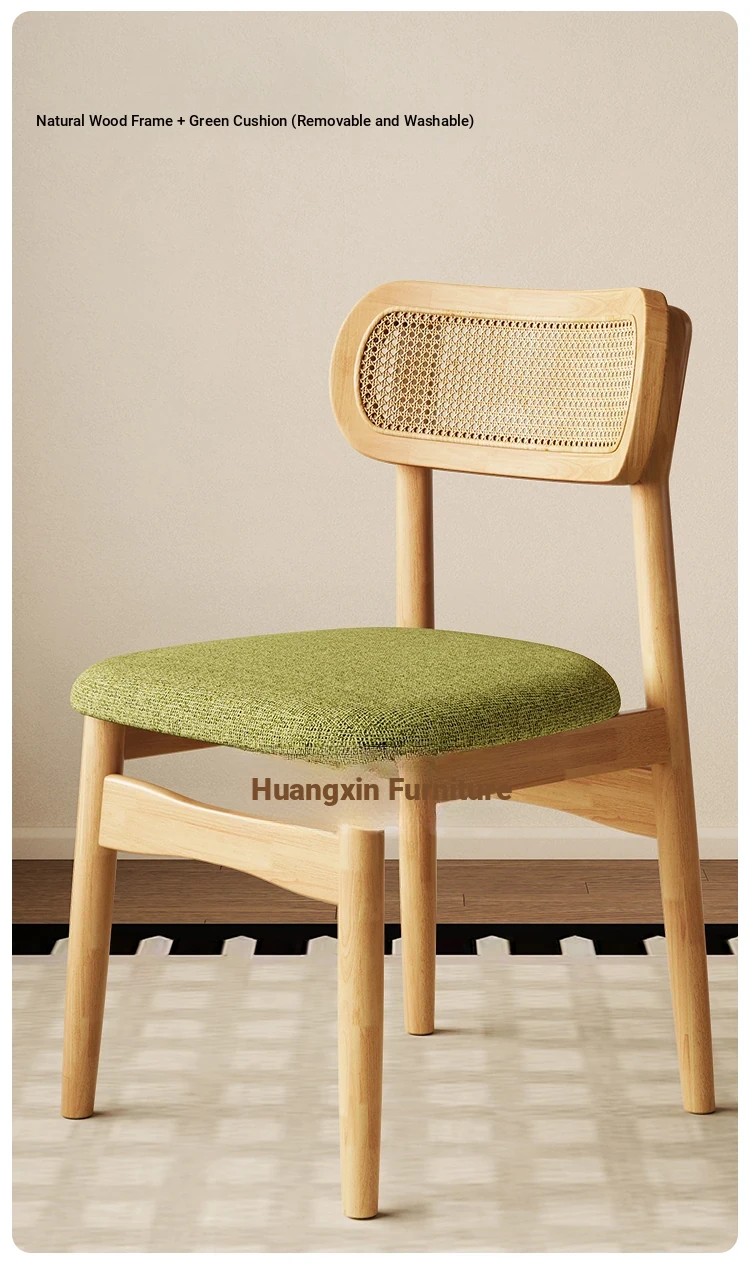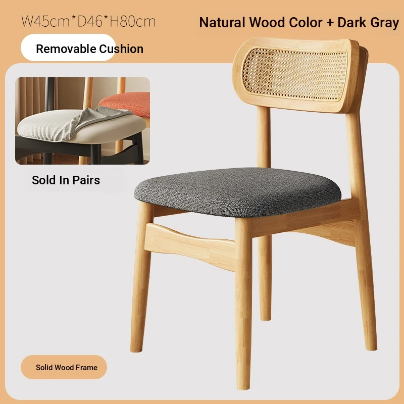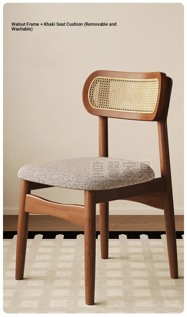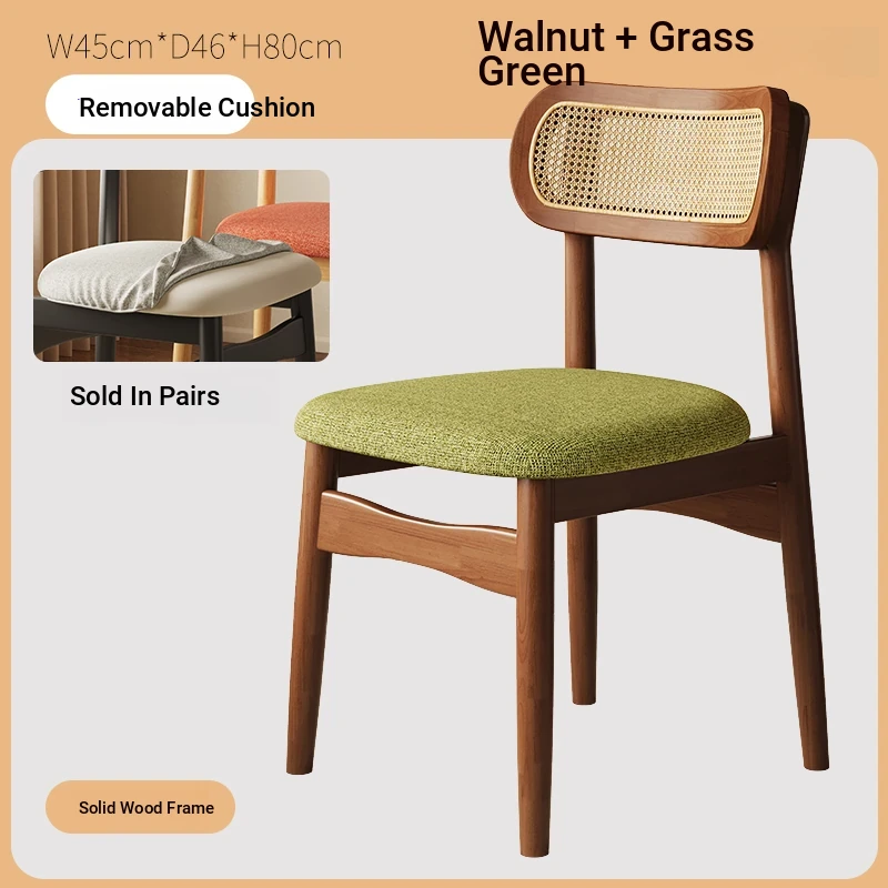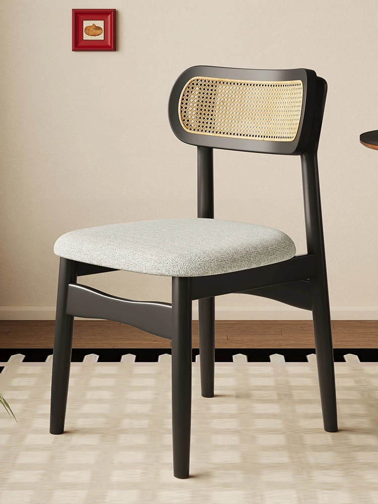 Vintage Style Removable Wooden Dining Chair - French High-End Retro Lightweight Rattan Backrest Chair for Home Use, Perfect for Casual Dining Spaces
