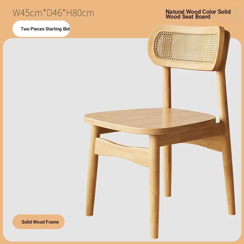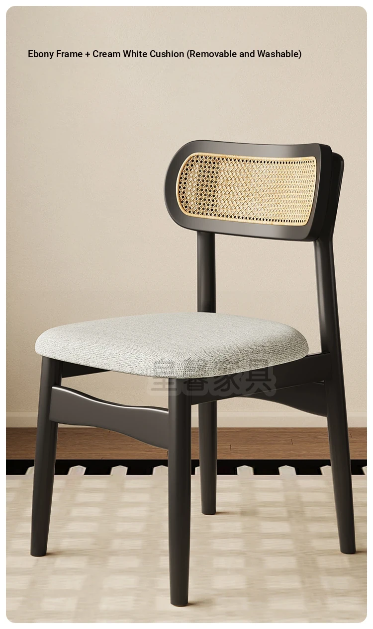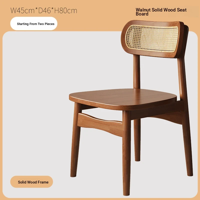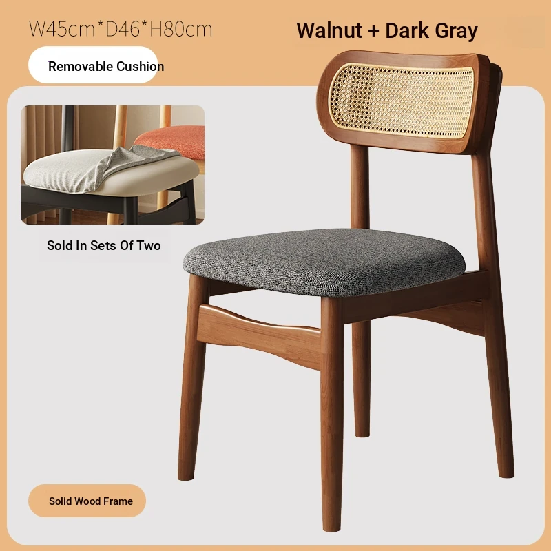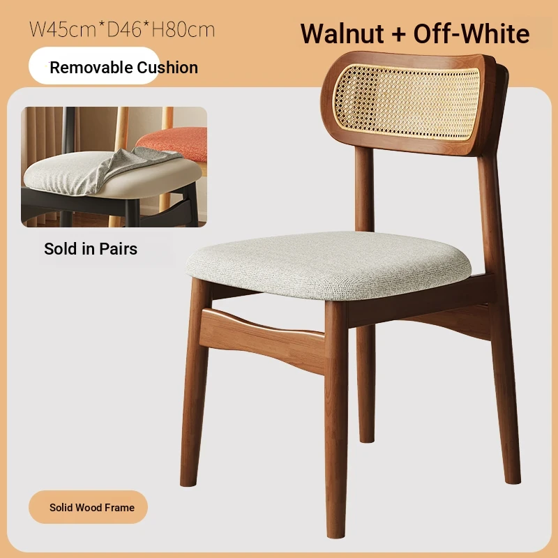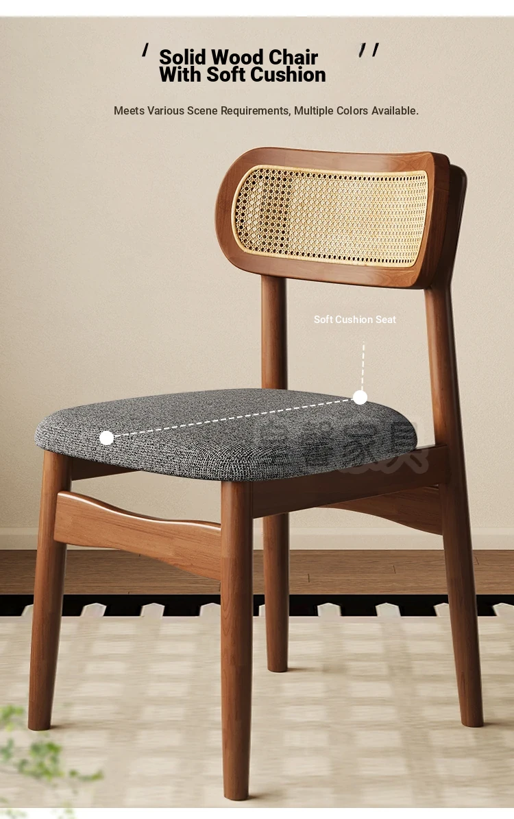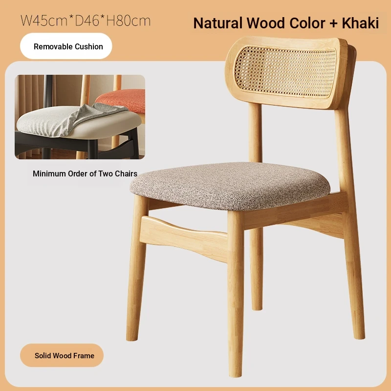 Vintage Style Removable Wooden Dining Chair - French High-End Retro Lightweight Rattan Backrest Chair for Home Use, Perfect for Casual Dining Spaces