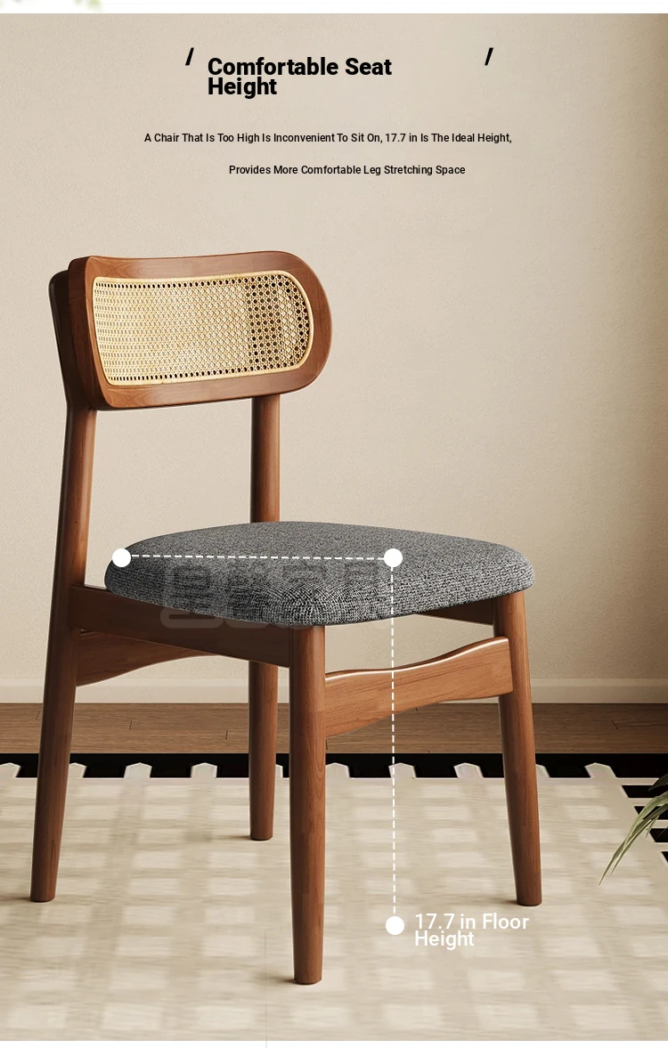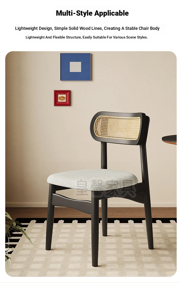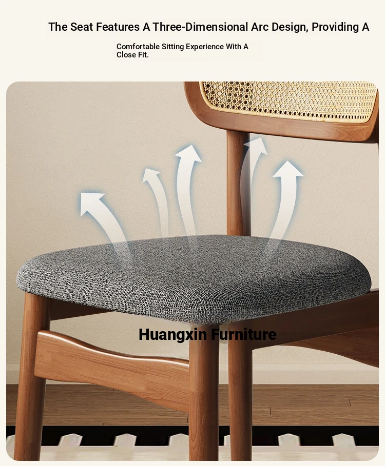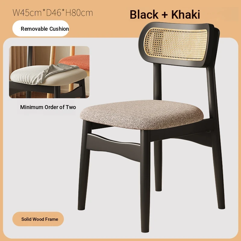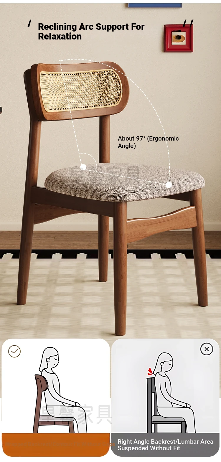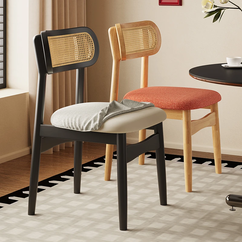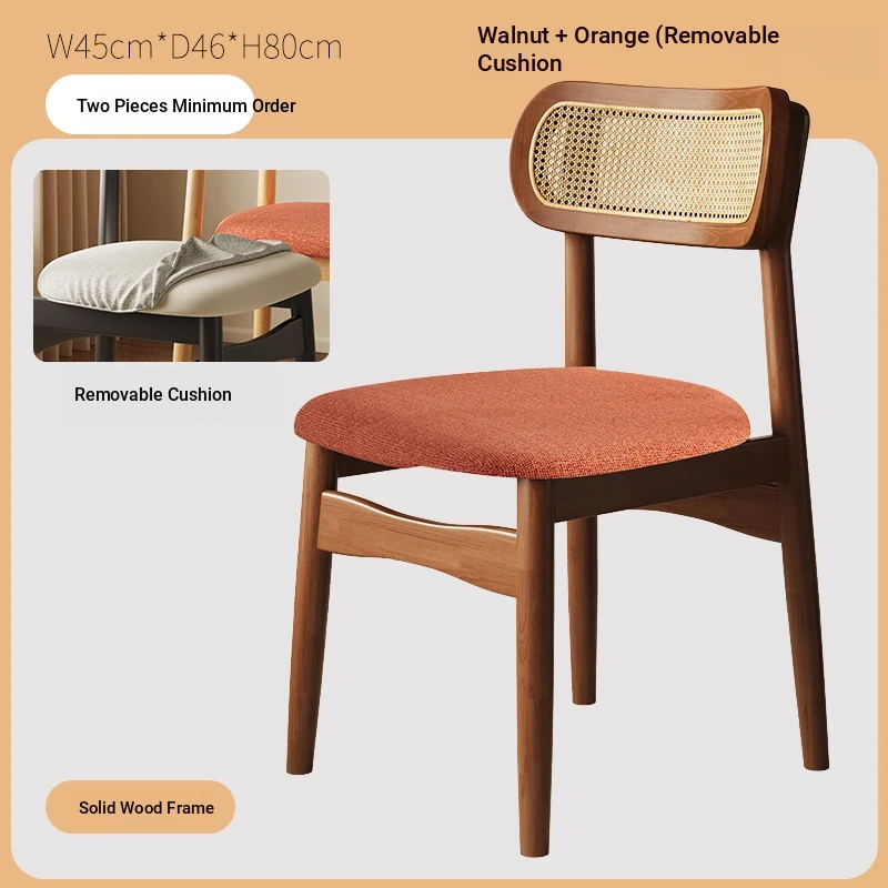 Vintage Style Removable Wooden Dining Chair - French High-End Retro Lightweight Rattan Backrest Chair for Home Use, Perfect for Casual Dining Spaces