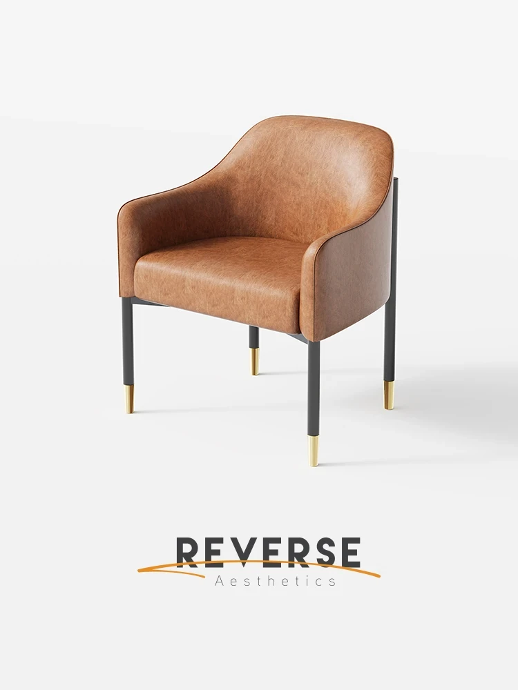 軽奢スタイルのダイニングチェア|超軽量合成皮革製|快適な背もたれで、食事や会話を楽しむための完璧な選択|ホテルのフロントや商談にも最適なデザイン!