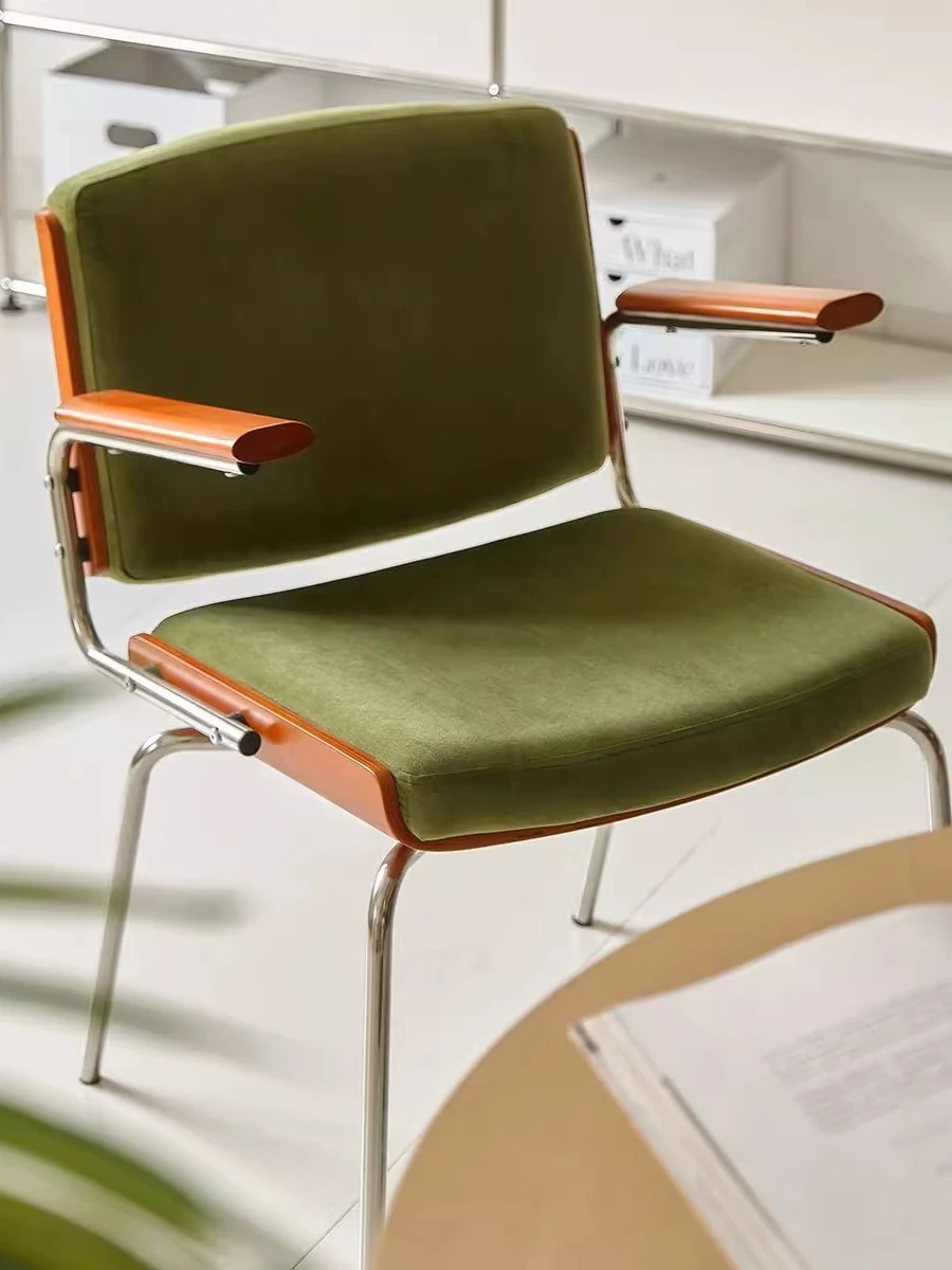 モバン 中古風ダイニングチェア イタリアンミニマリズム 高級感溢れるティーチェア 北欧レトロ 本革サドルレザーアーム付きダイニングチェア