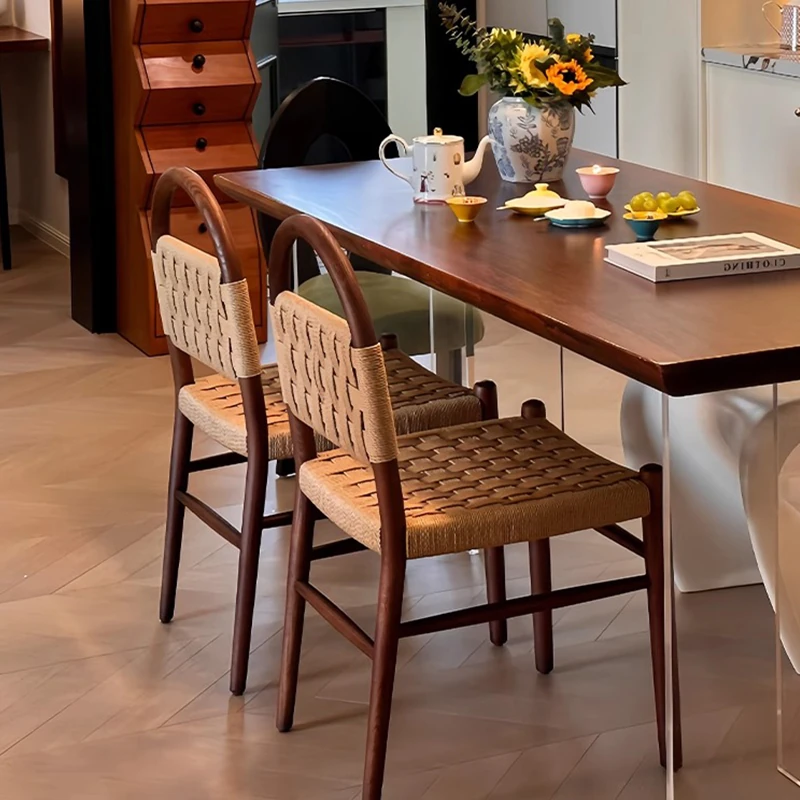 楠ダイアル実木ダイニングチェア|北欧風レトロデザイン|おしゃれな背もたれ付き|人気の編み込みスタイル|快適なソフトパッド付き|家庭用に最適なレストランチェア